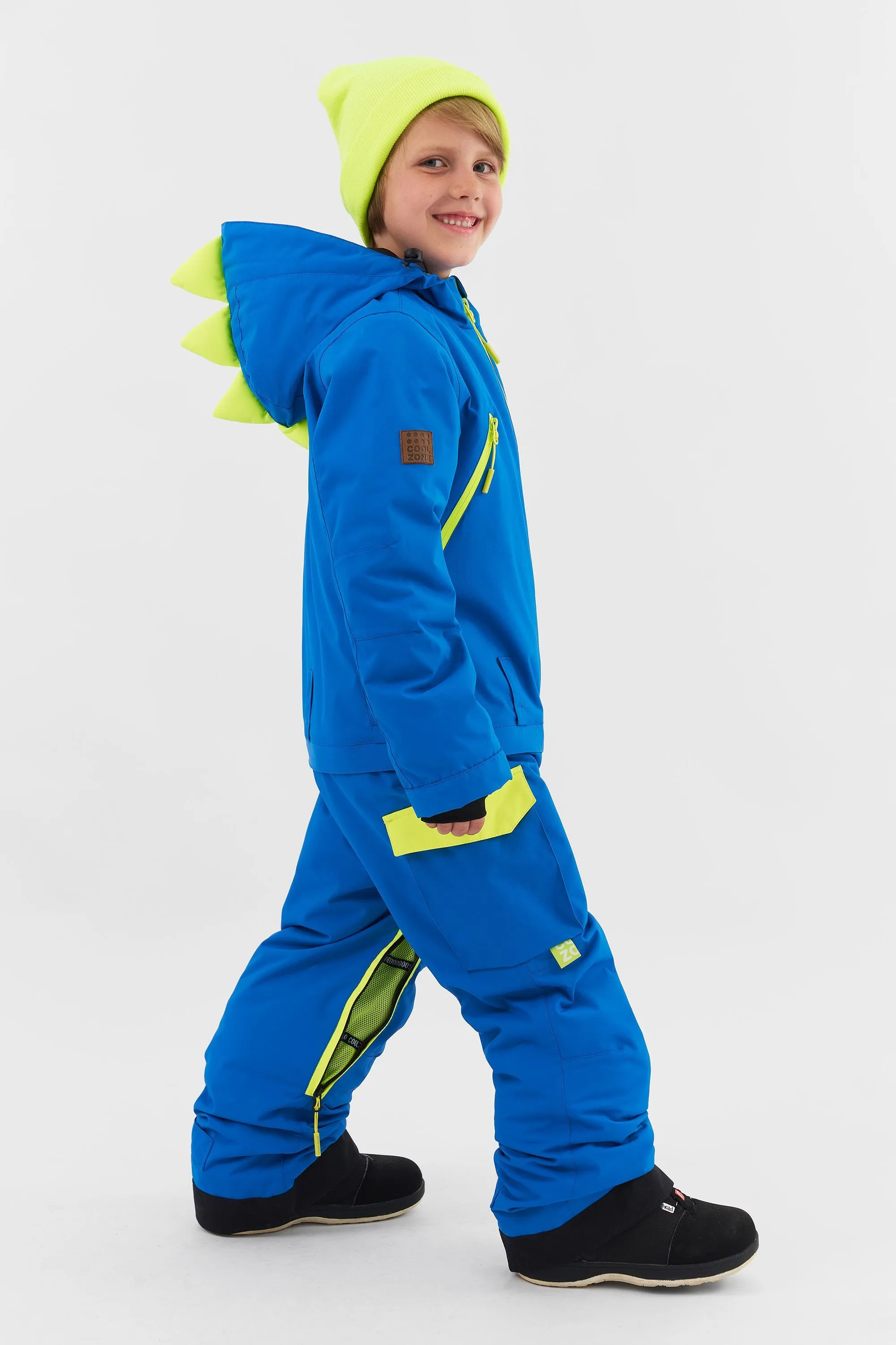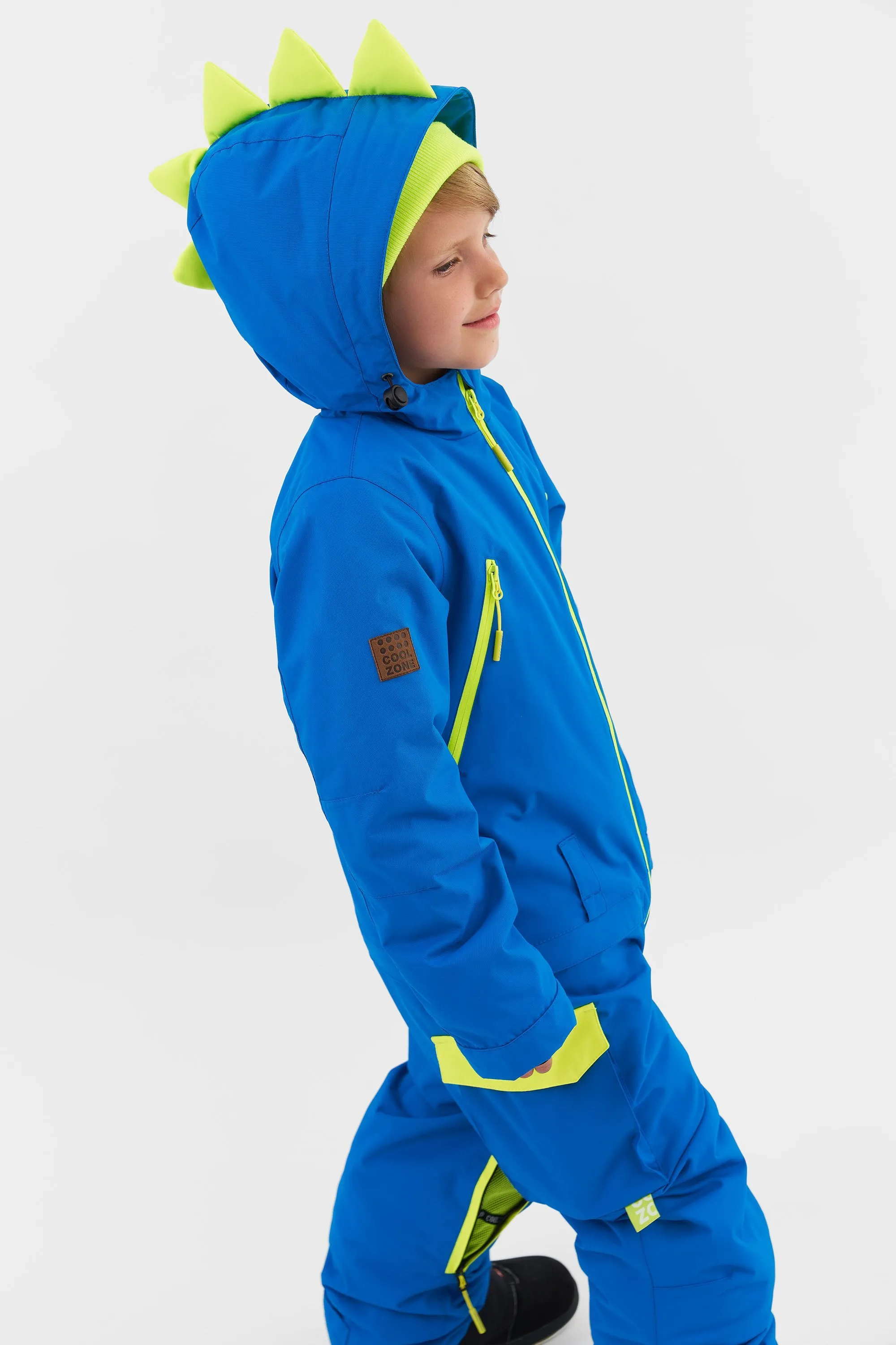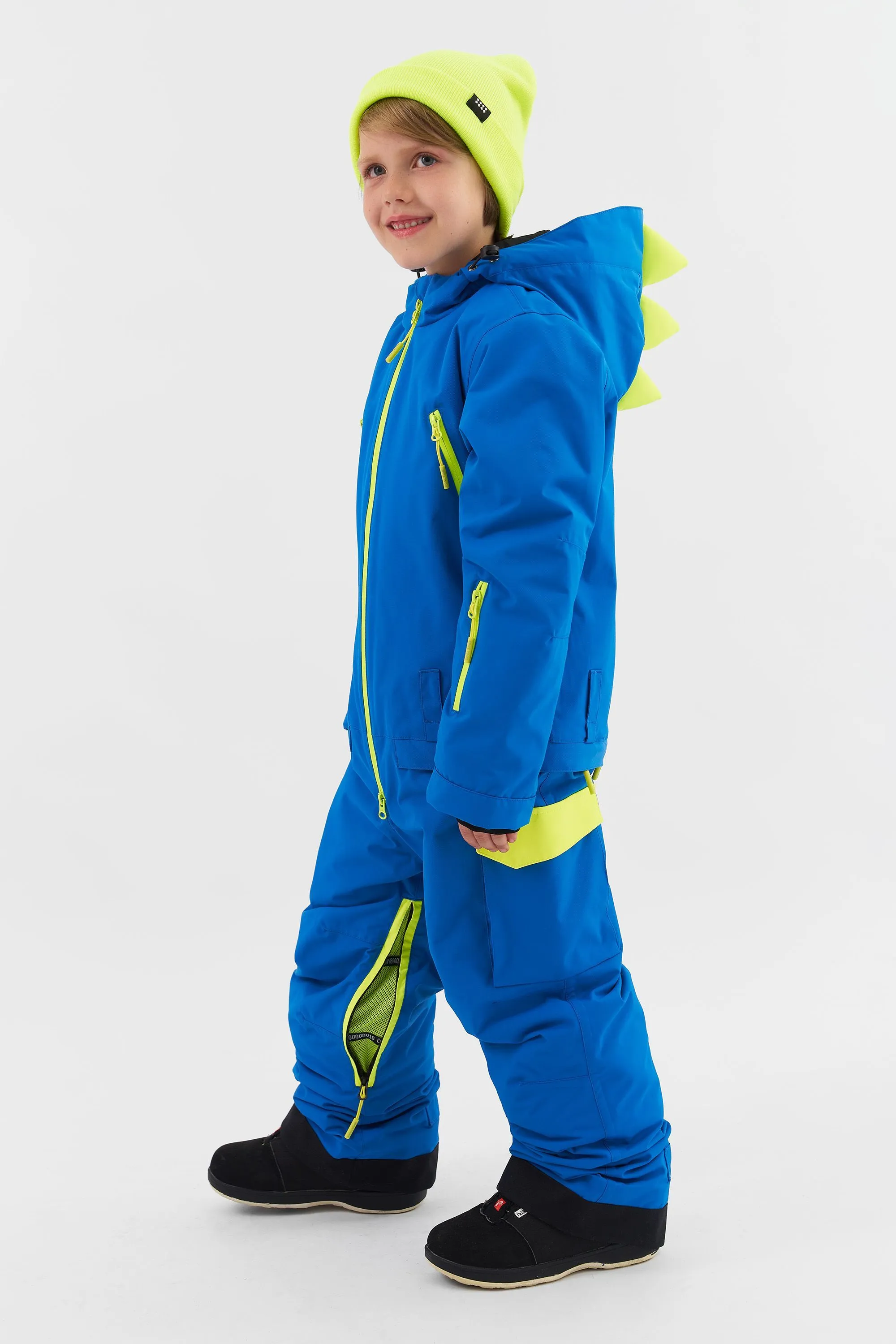 Этот комбинезон создан для активных малышей, готовых покорять снежные просторы в образе своего любимого динозавра.
