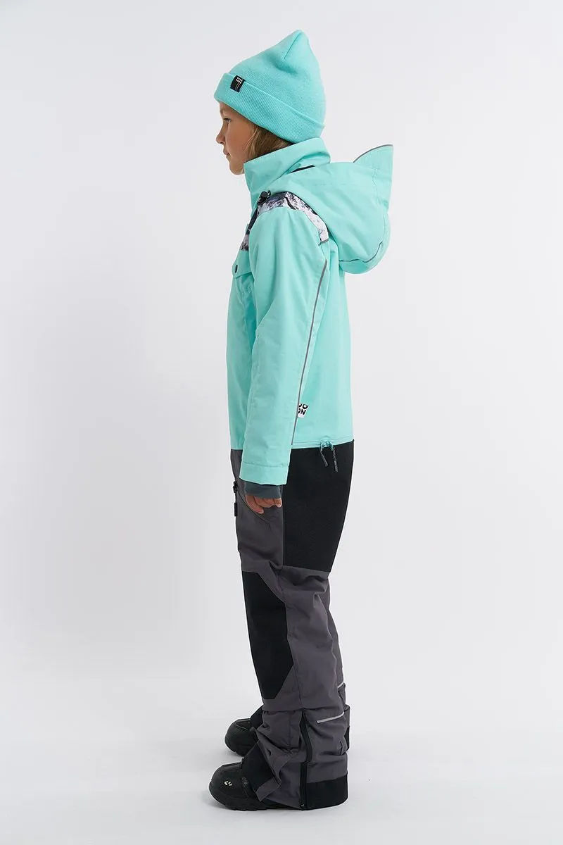 Прочная мембранная ткань комбинезона устойчива к износу, эффективно защищает от влаги и обладает высокой воздухопроницаемостью. Инновационный утеплитель надёжно удерживает тепло, обеспечивая комфорт юному райдеру даже в холодную погоду. Защиту от снега и влаги усиливают влагозащитные молнии, герметично проклеенные швы и дополнительные трикотажные манжеты.