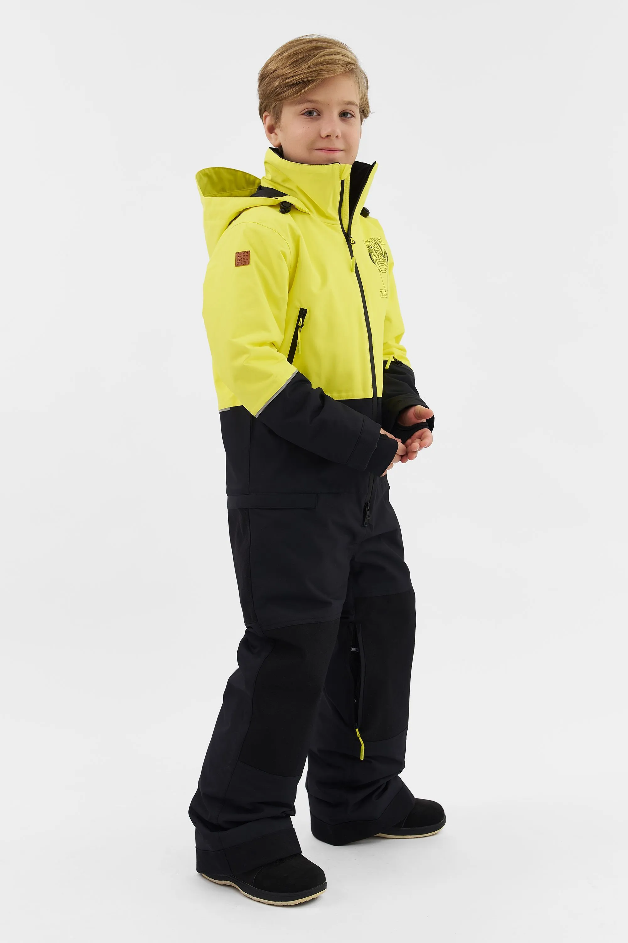 В отличие от раздельной экипировки, цельный зимний комбинезон обеспечивает непрерывную защиту от холода и снега, удерживает тепло и не позволяет ветру проникать внутрь. Это особенно важно во время катания на сноуборде или лыжах, когда ребёнок активно двигается и часто оказывается в снегу.