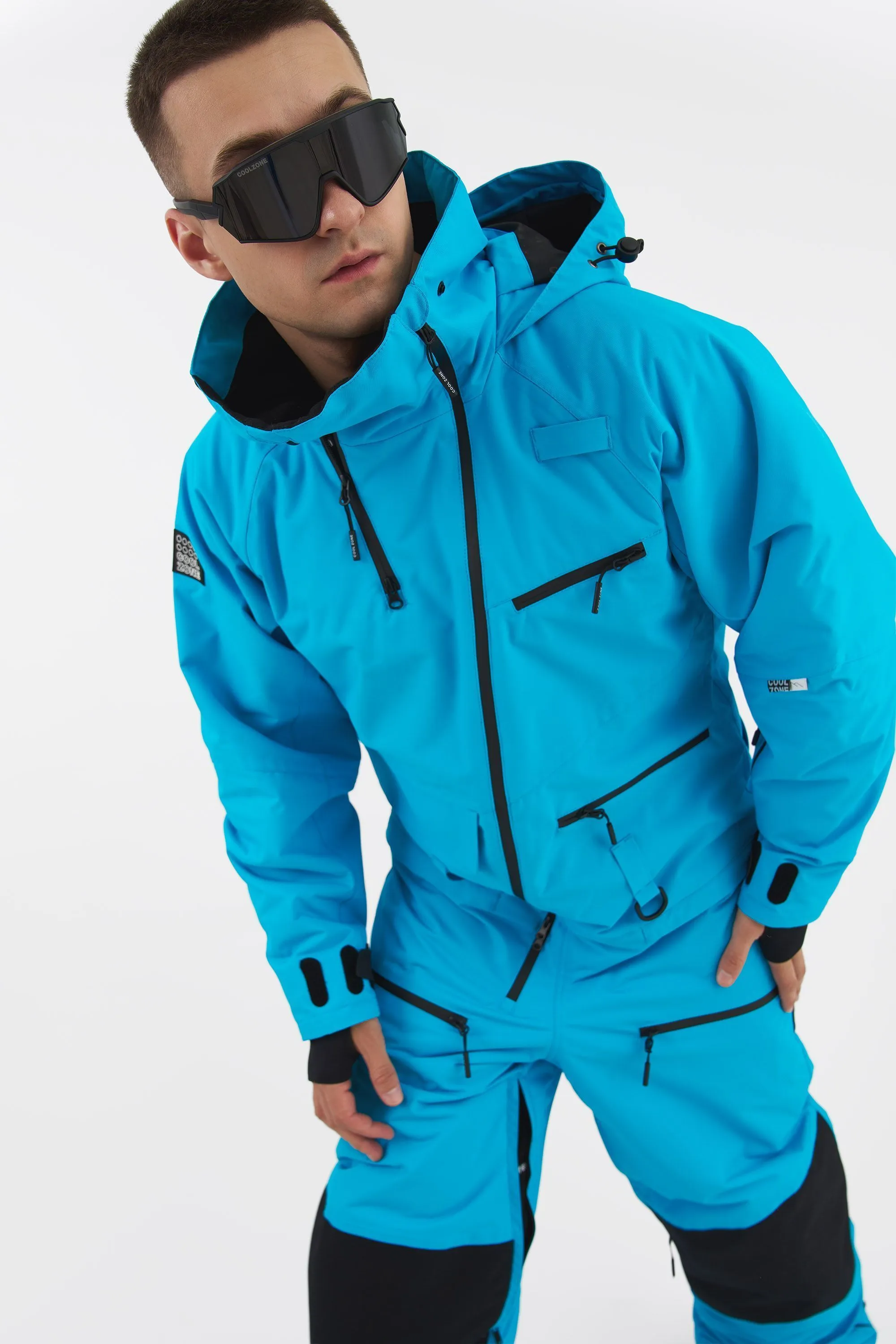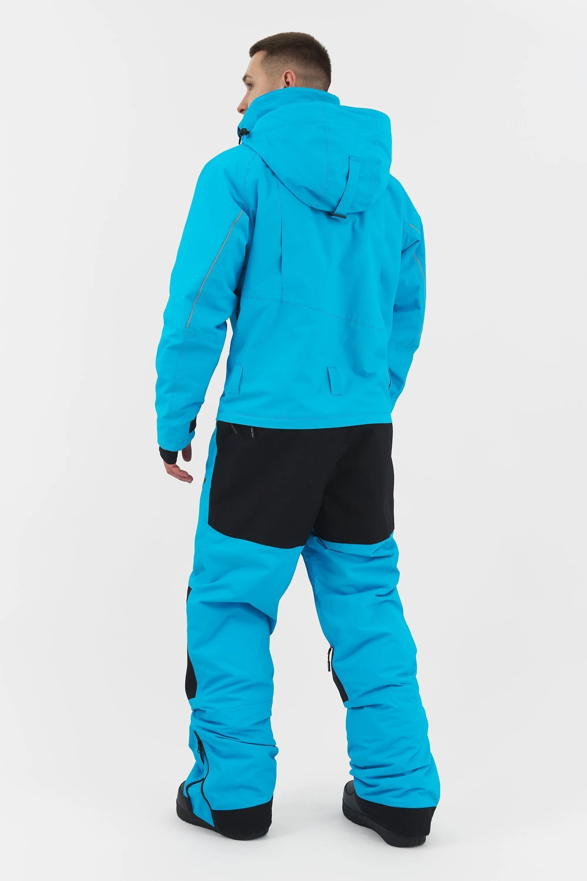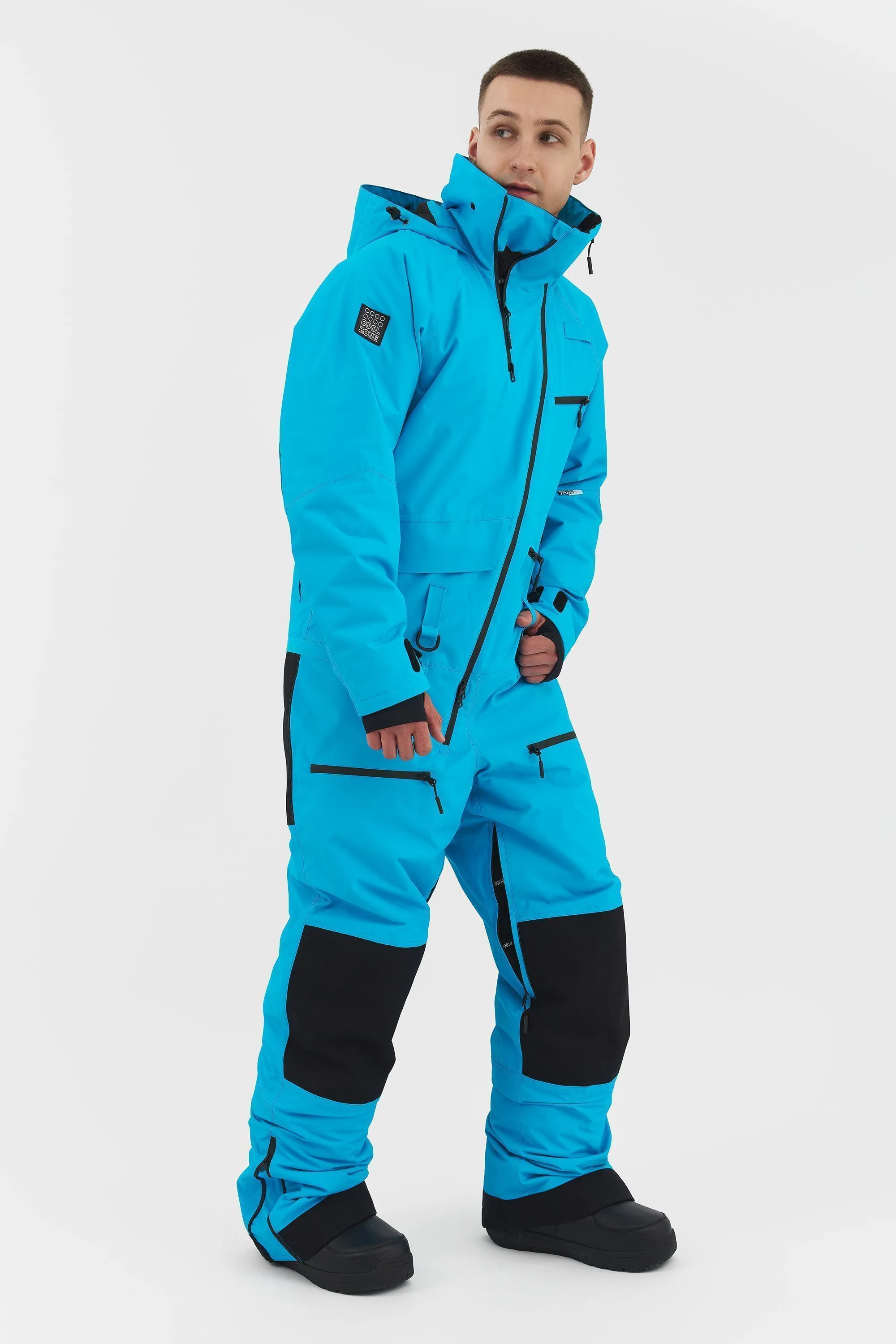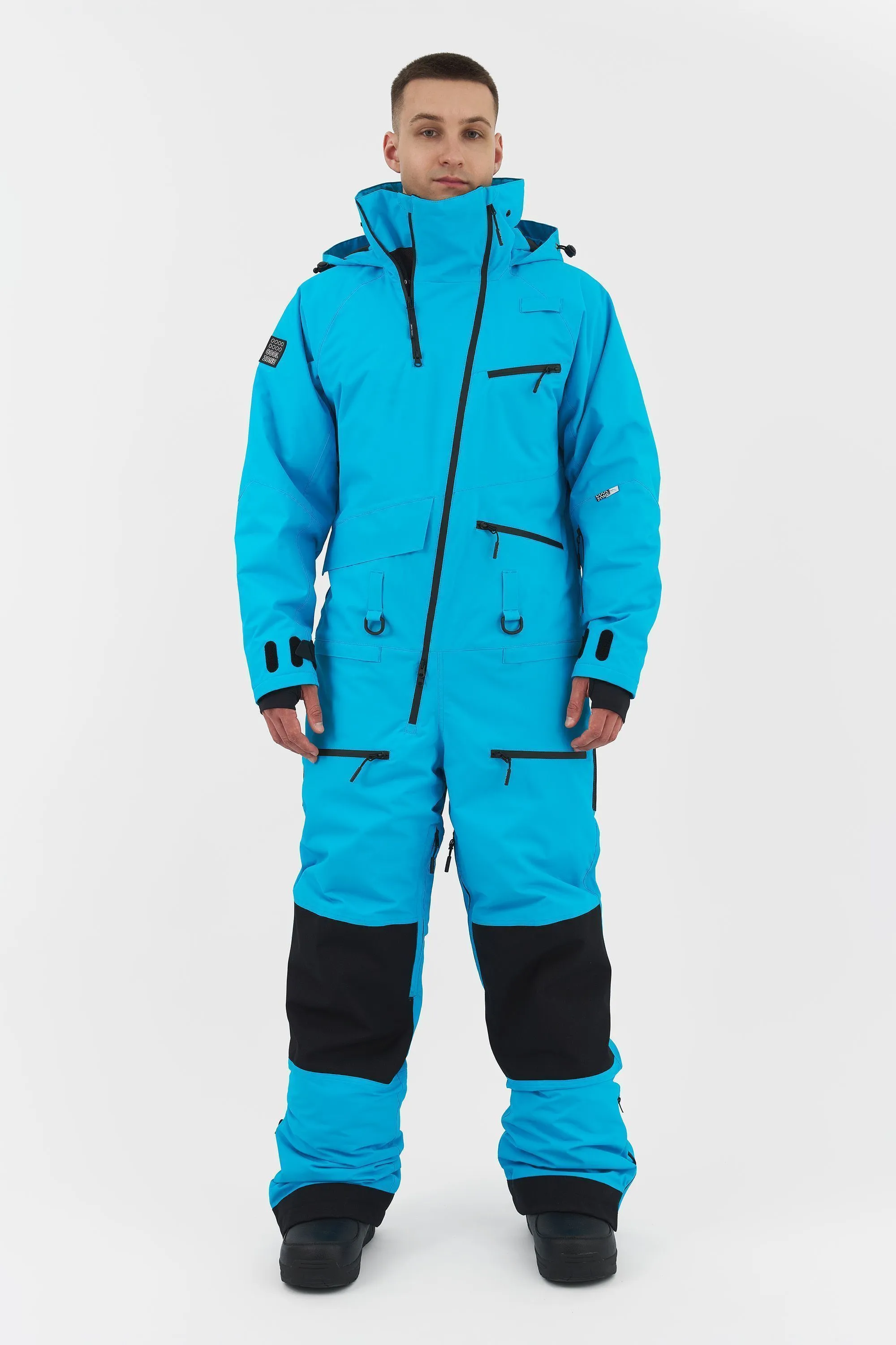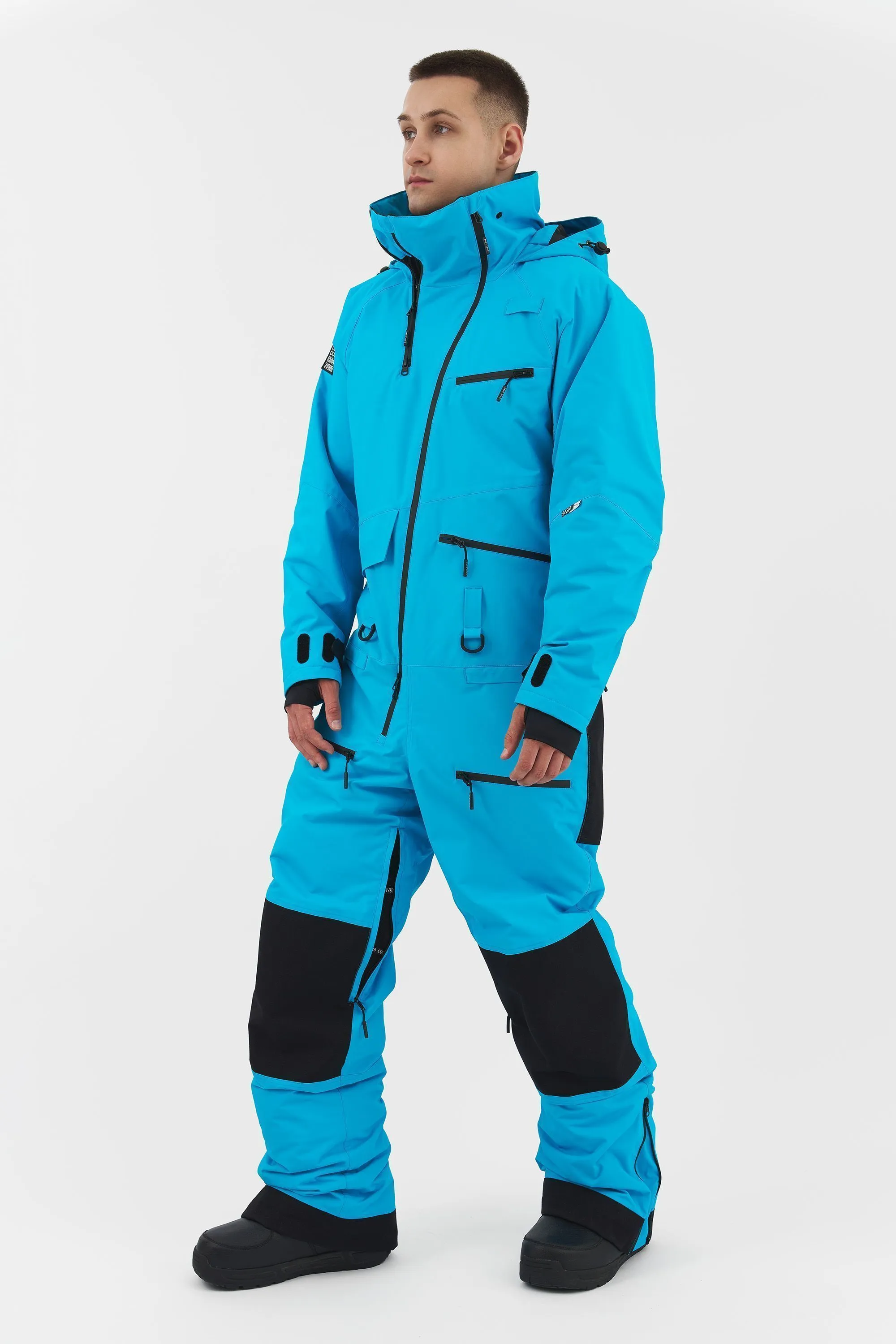 Комбинезон выполнен из прочной мембранной ткани, которая не пропускает влагу снаружи и не задерживает пар внутри. Влагозащитные молнии, снегозащитные гетры и дополнительные трикотажные манжеты исключают попадание внутрь мокрого снега.