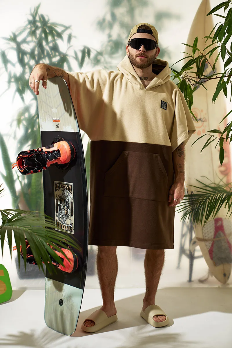 Флисовое пончо для тех, кто занимается водными видами спорта: кайтинг, серфинг, вейкборд, вейк-серф и др. Пончо будет согревать вас на споте до и после катания, а также позволит комфортно снять или надеть гидрокостюм.