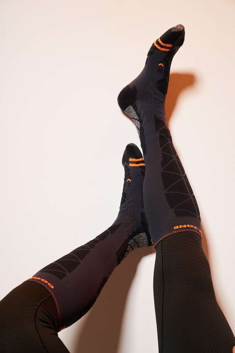 Структура носка гарантирует комфорт в условиях максимальной подвижности. Нити Polycolon сохраняют тепло, эластан марок Lycra и Spandex поддерживают голеностопный сустав и икроножные мышцы. Отведение влаги и антибактериальная пропитка обеспечивают здоровый климат внутри ботинка.