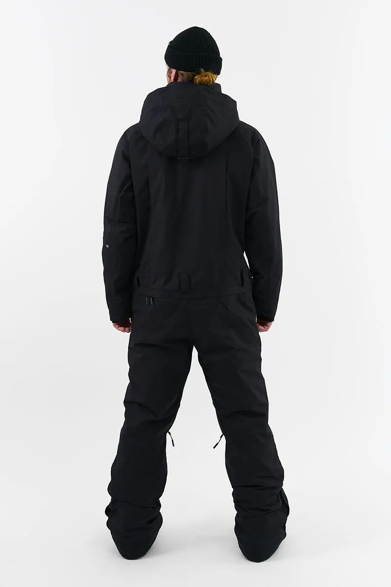 Внешний слой прочный и устойчив к истиранию. Мембрана отвечает за водостойкость, ветрозащиту и паропроницаемость. Швы герметично проклеены. Свободная посадка предполагает наличие базовых и утепляющих слоев. Максимально защищает от неблагоприятных погодных условий. Закрытая под планкой с магнитами центральная молния, эластичные манжеты и снегозащитные гетры для крепления к ботинкам, регулировка длины штанин, эргономичный регулирующийся капюшон, который с легкостью можно сочетать со шлемом и маской.