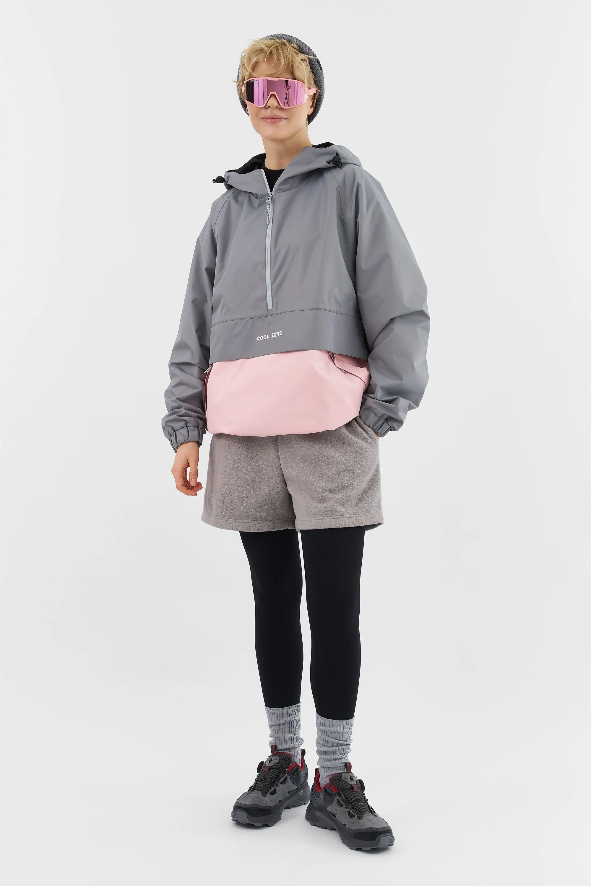 Цветовая палитра представлена нежными пастельными тонами, классическим черным и яркими акцентными оттенками. Анорак можно сочетать с полукомбинезоном, брюками и даже с шортами в соответствии с погодными условиями.
