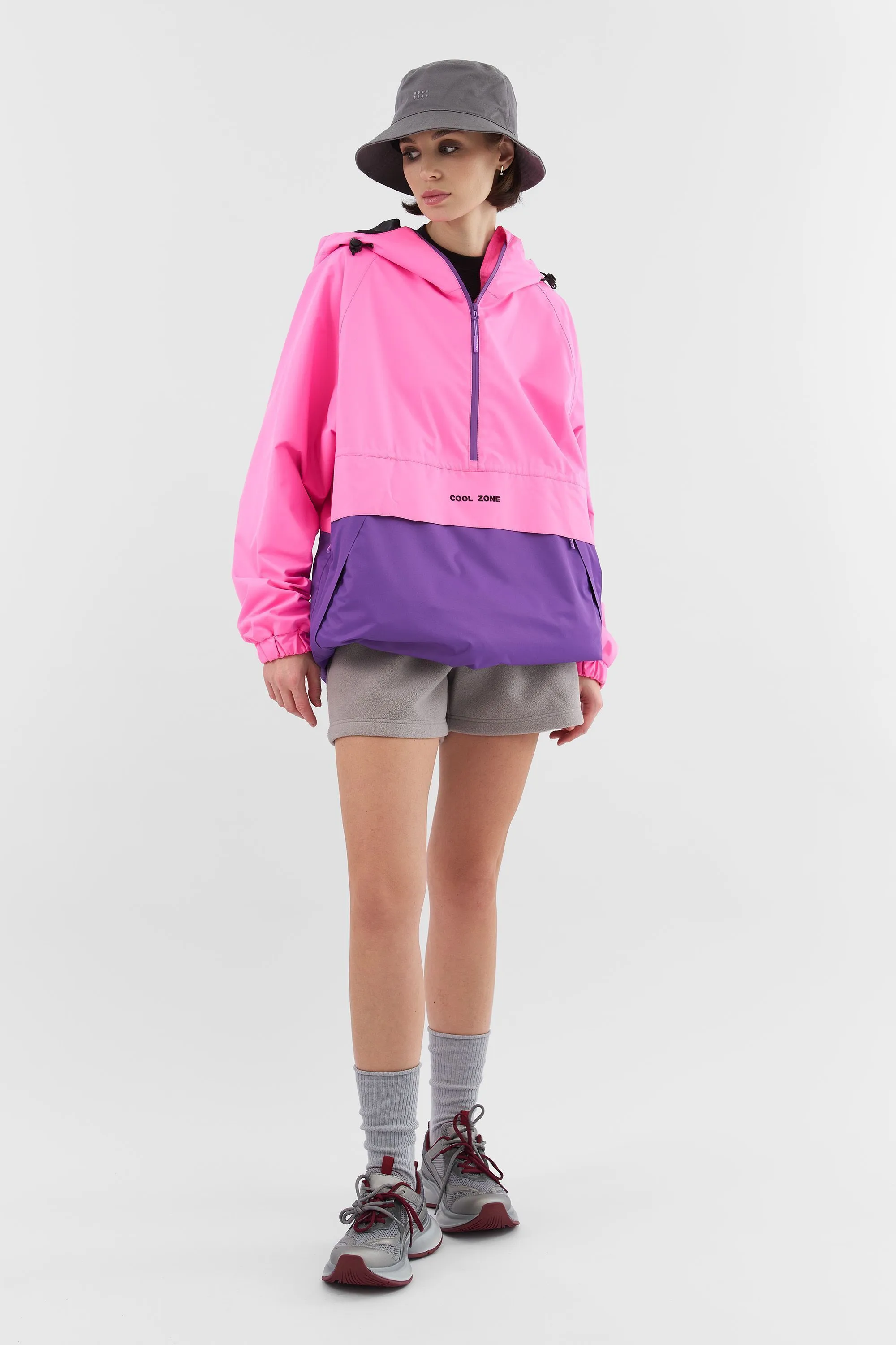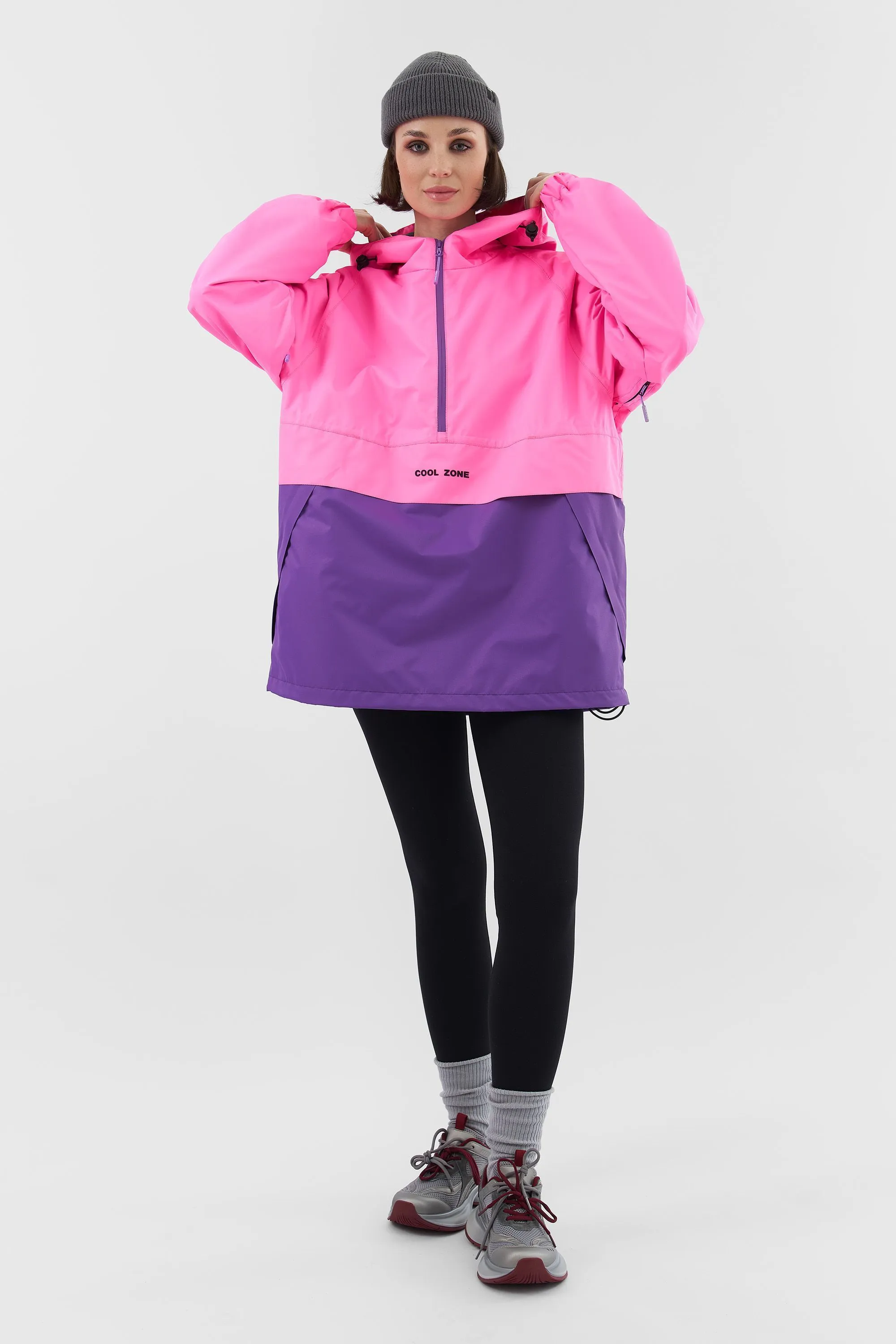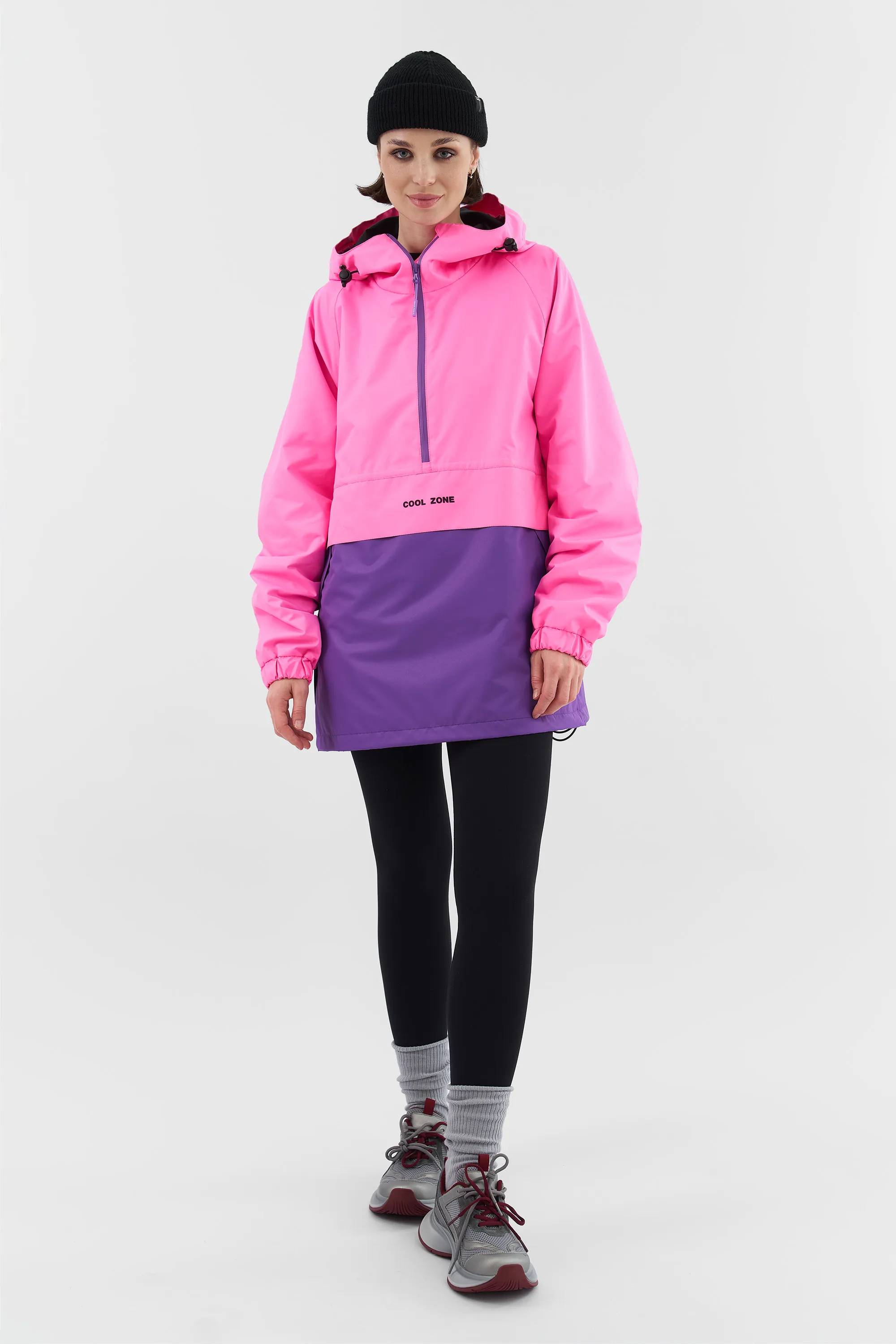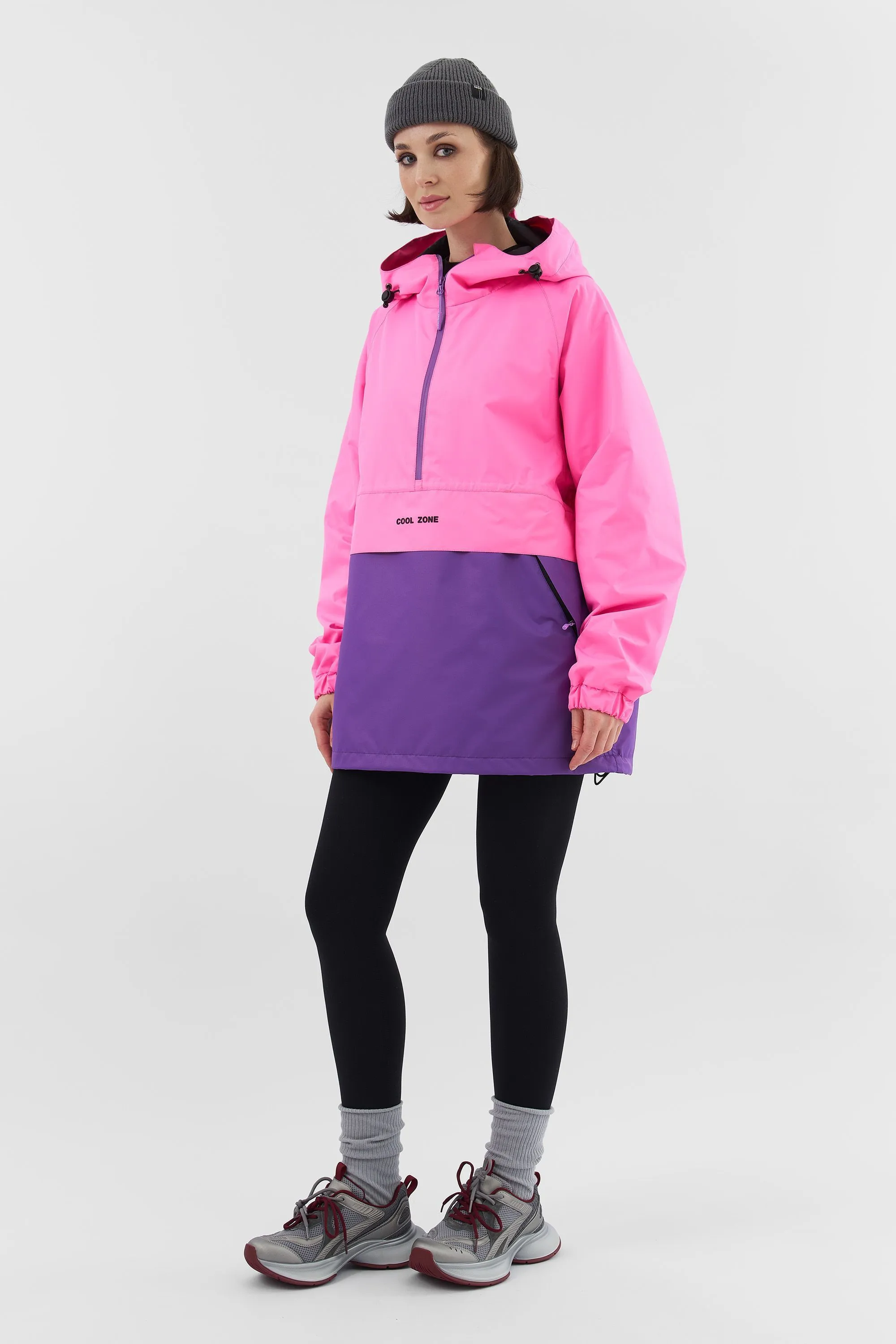 Цветовая палитра представлена нежными пастельными тонами, классическим черным и яркими акцентными оттенками. Анорак можно сочетать с полукомбинезоном, брюками и даже с шортами в соответствии с погодными условиями.
