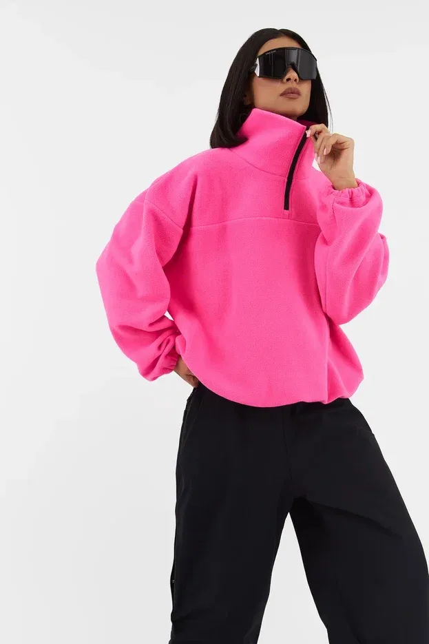 Современная и универсальная кофта свободного кроя из тёплого флиса — идеальное решение для создания комфортного и стильного образа в любую погоду. Благодаря свободному силуэту и универсальному размеру onesize, изделие прекрасно садится на любые типы фигур, подчёркивая индивидуальность и обеспечивая максимальное удобство.
