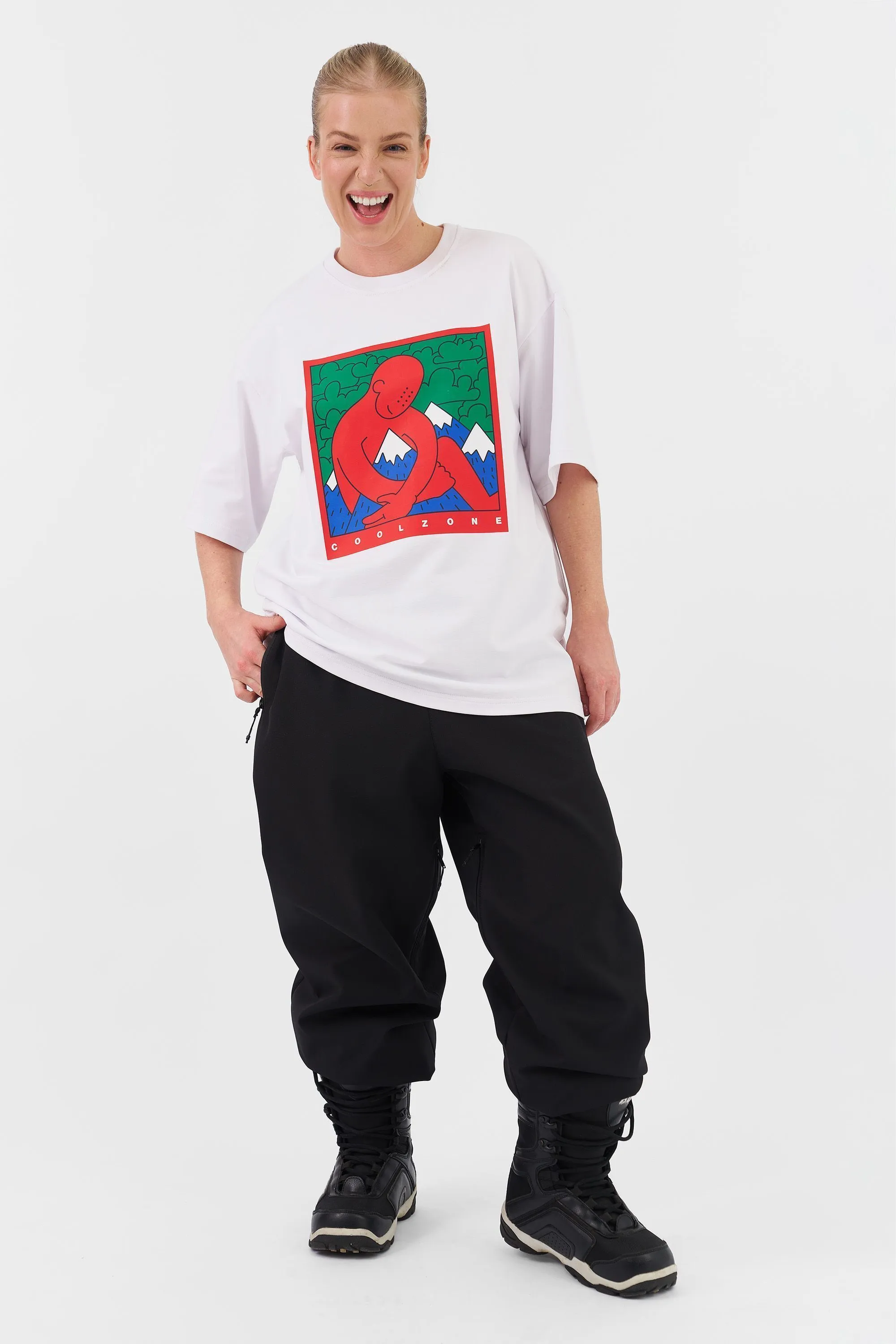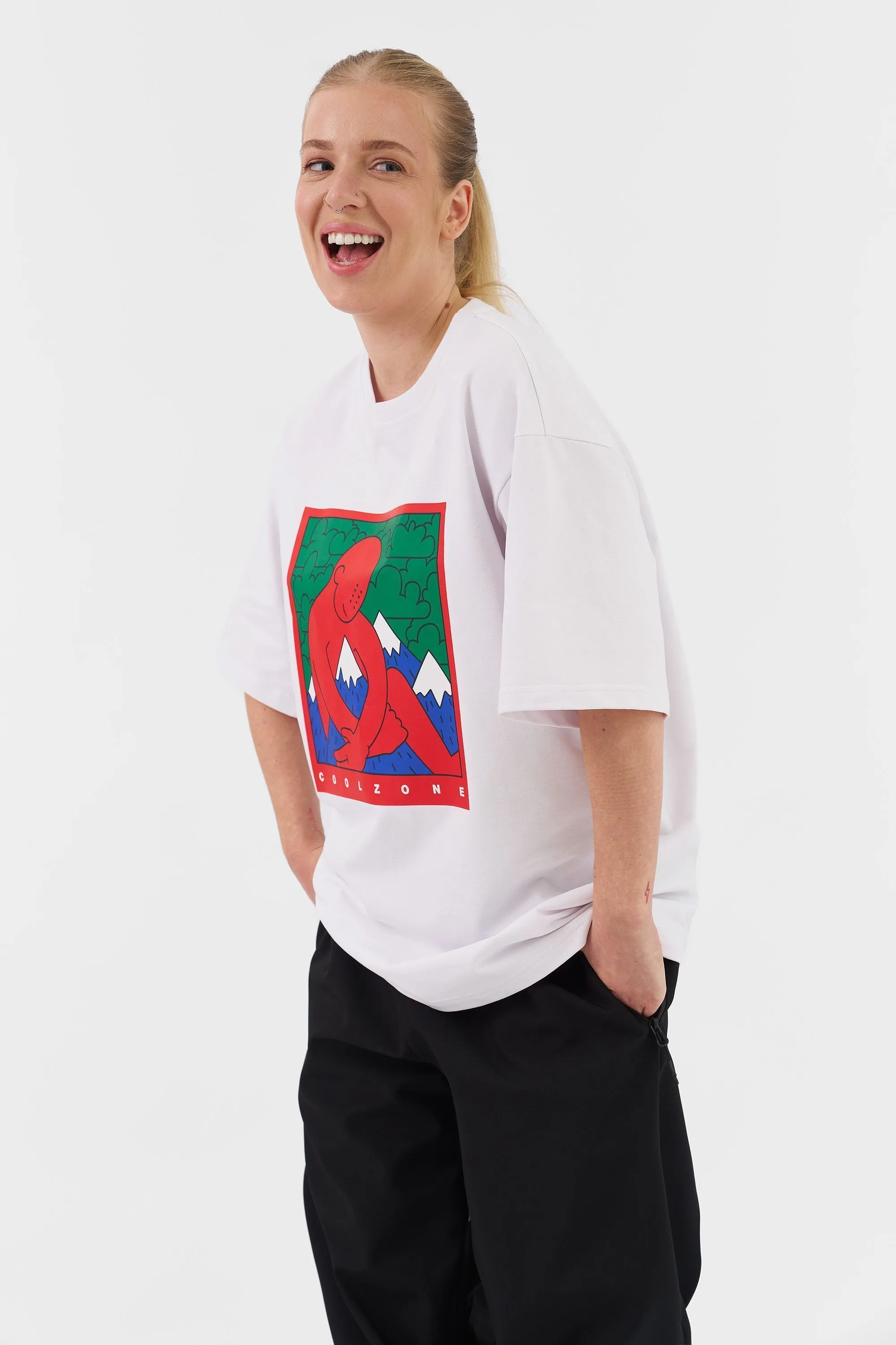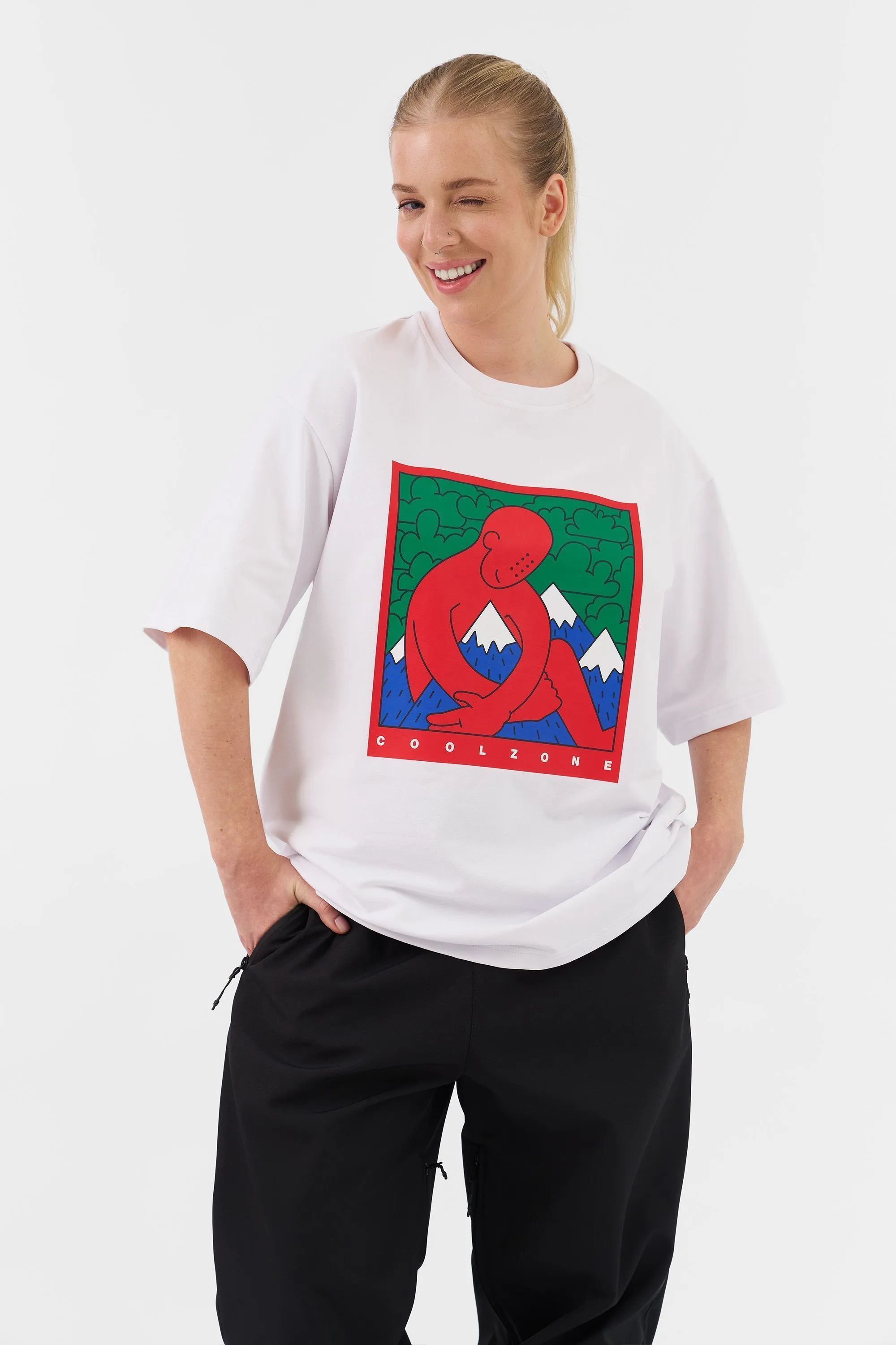 Футболка свободного кроя изготовлена из плотного футера — прочного, дышащего и комфортного в носке. Дизайнерский принт на груди от команды Cool Zone подчёркивает характер бренда: свободолюбивый, активный, с акцентом на стиль и качество. Идеальна для города, путешествий или активного уикенда. Хорошо держит форму, не просвечивает.