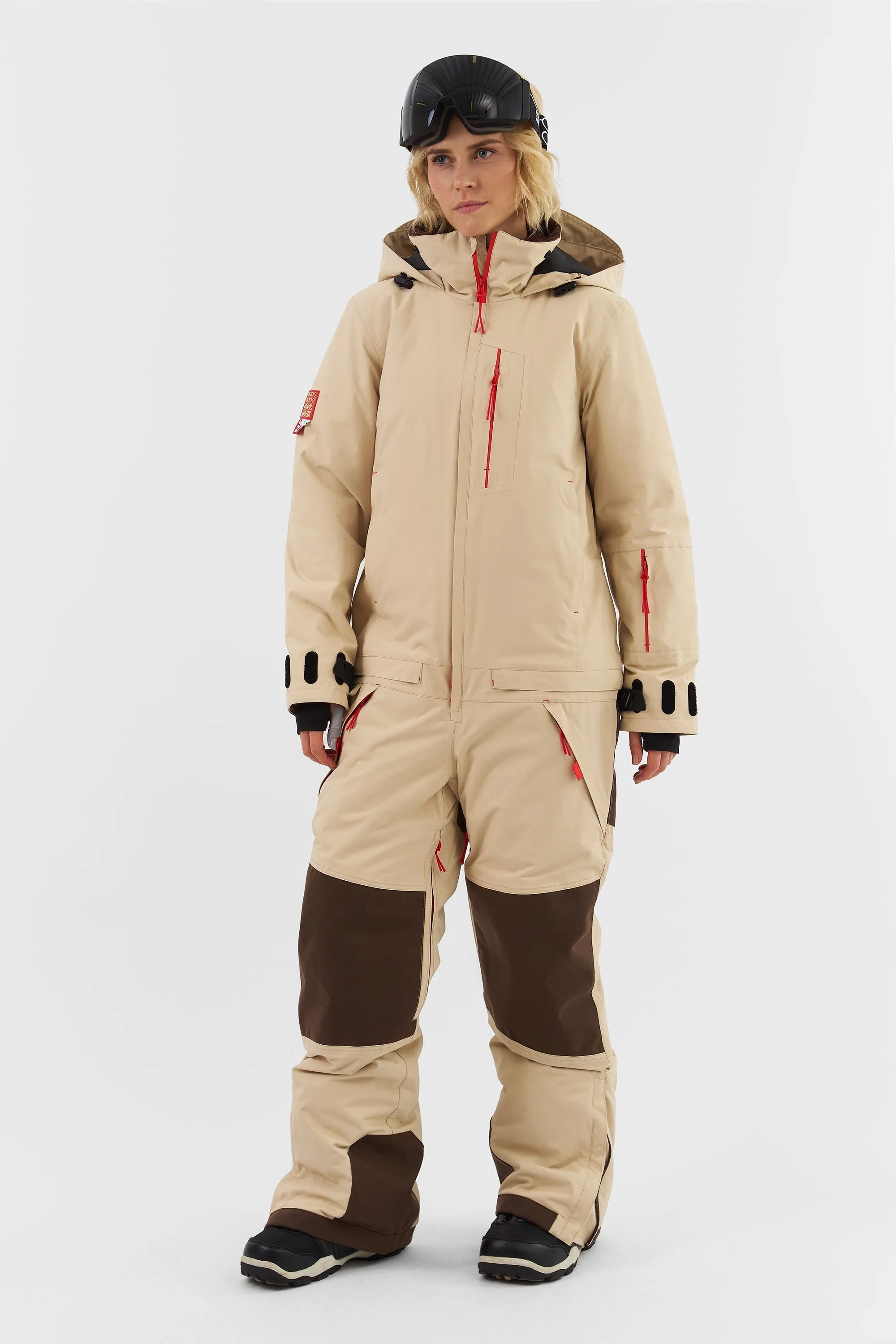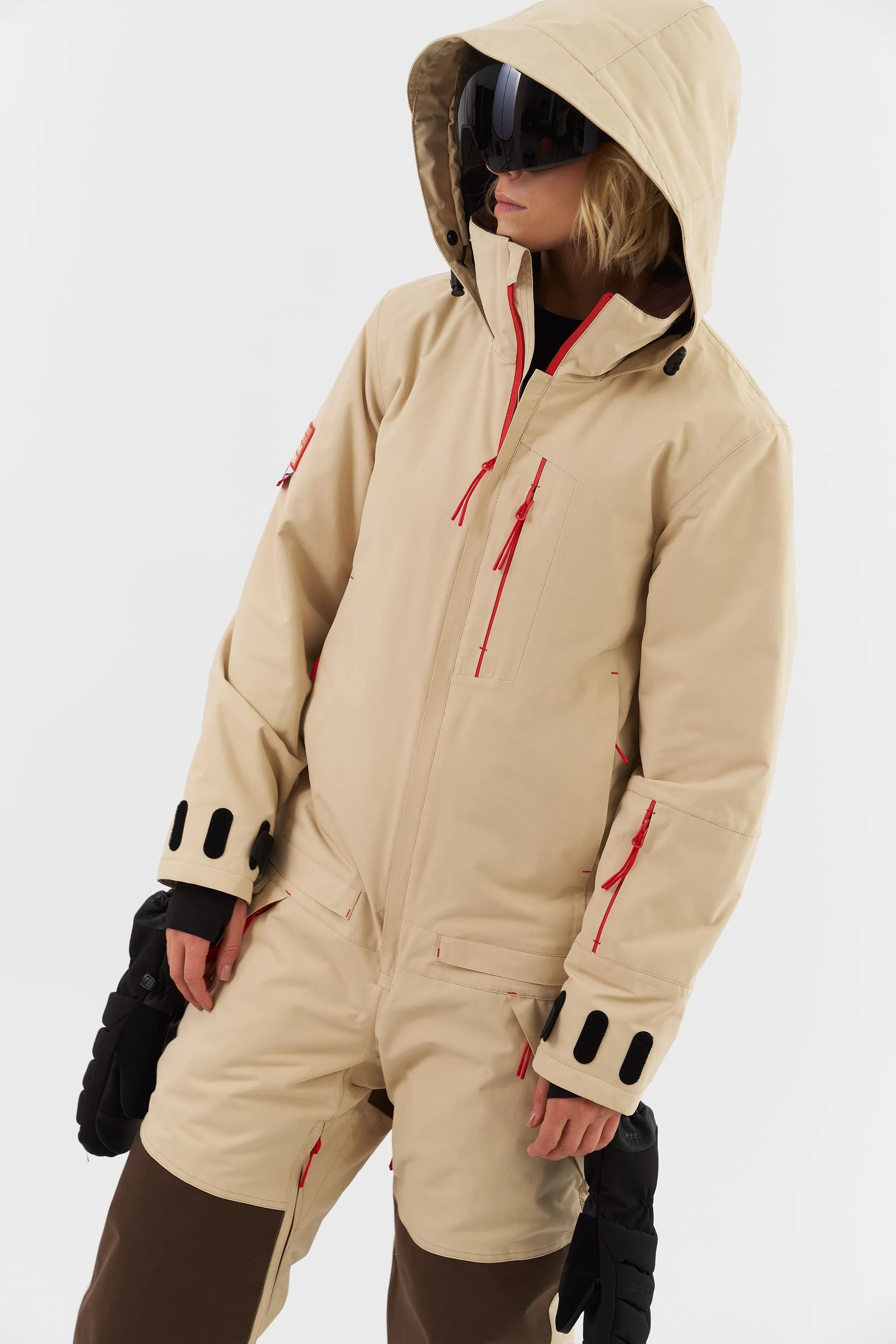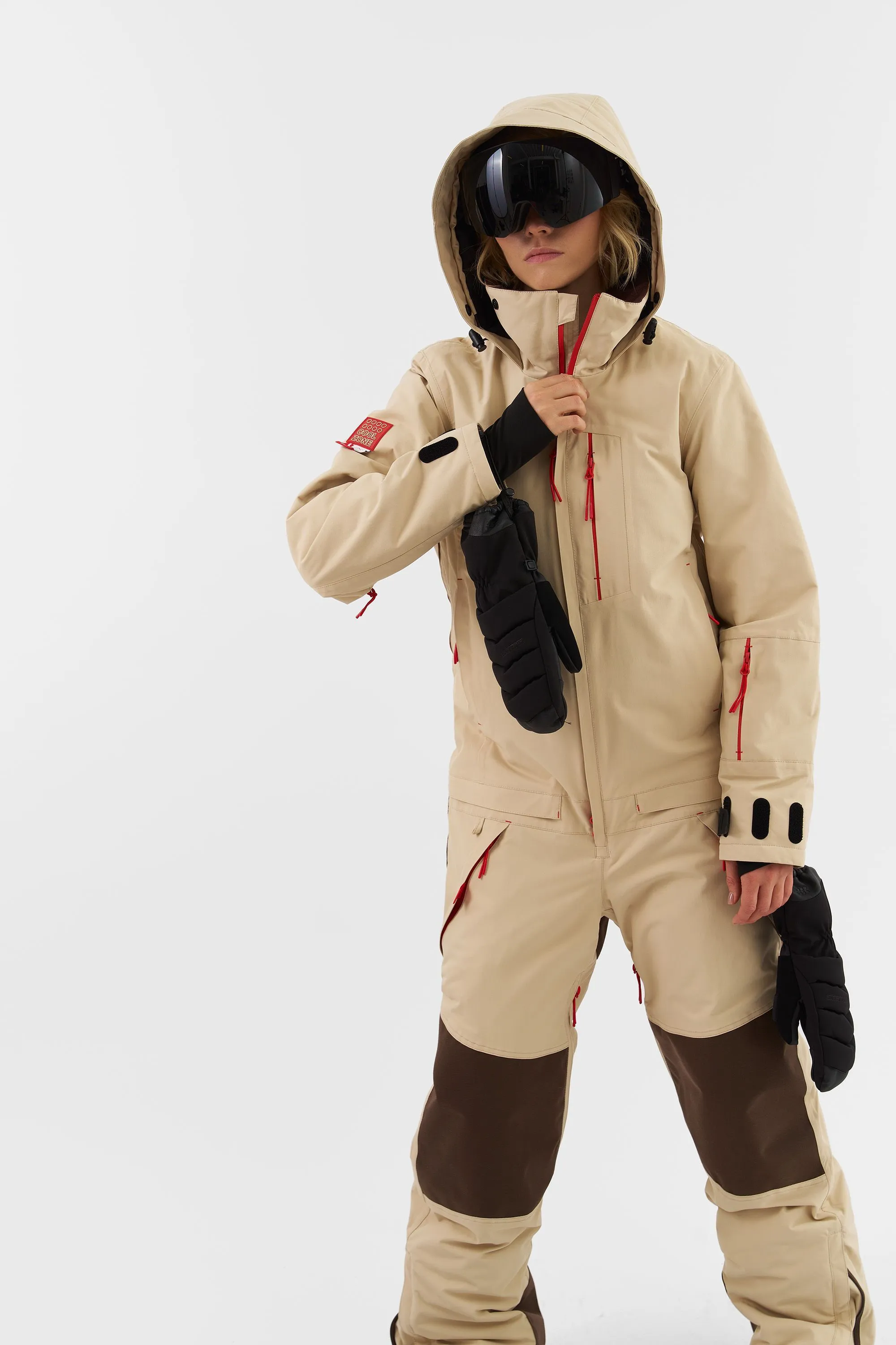 Данная модель подходит для любителей сноукайтинга. Внутренние липучки у центральной молнии позволяют прикрепить деталь для вывода крюка от трапеции, а три бегунка на центральной молнии предоставляют возможность надеть трапецию под комбинезон (данная деталь приобретается отдельно и не входит в комплектацию комбинезона). Этот функционал позволяет избегать попадания ветра и снега под комбинезон во время катания.