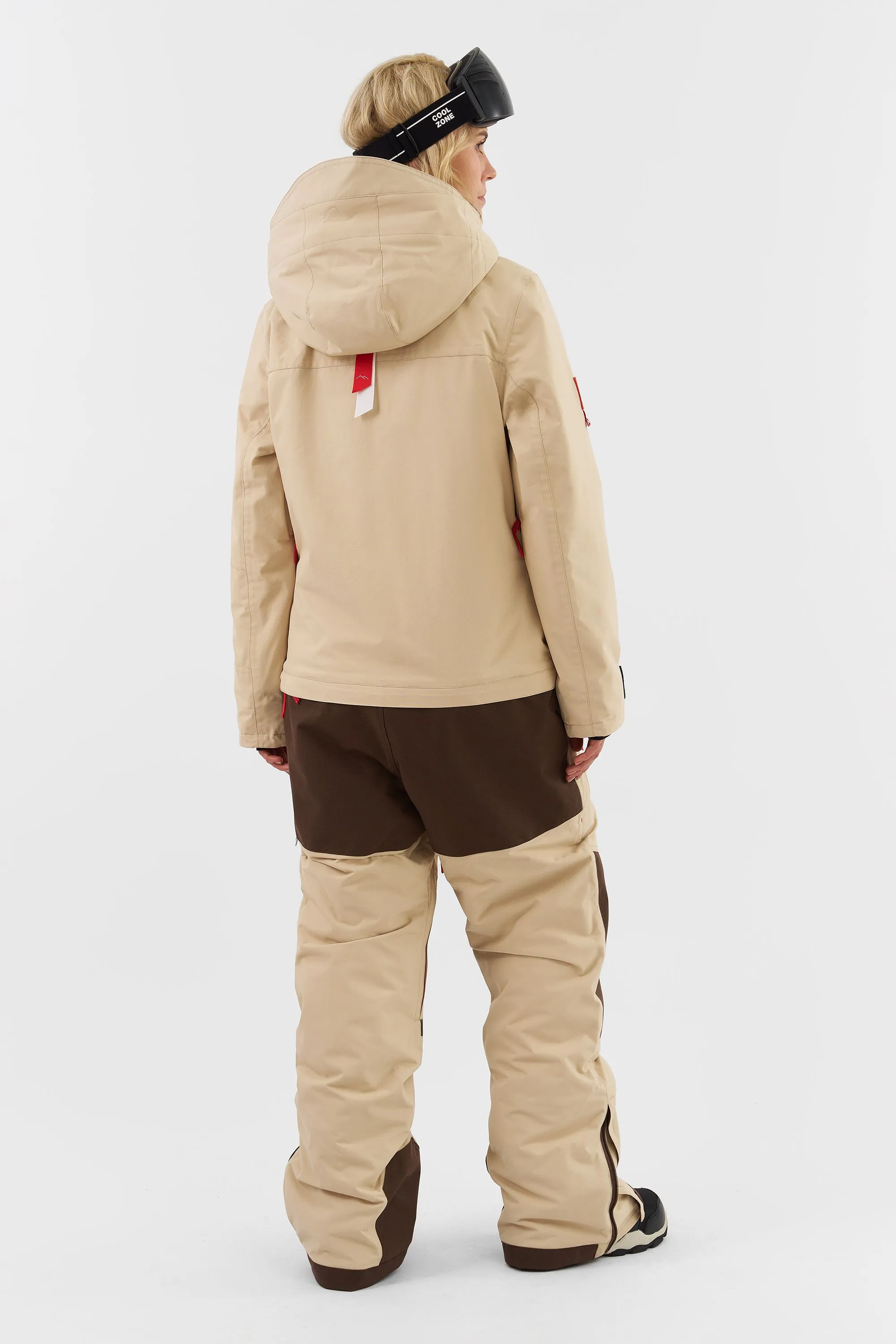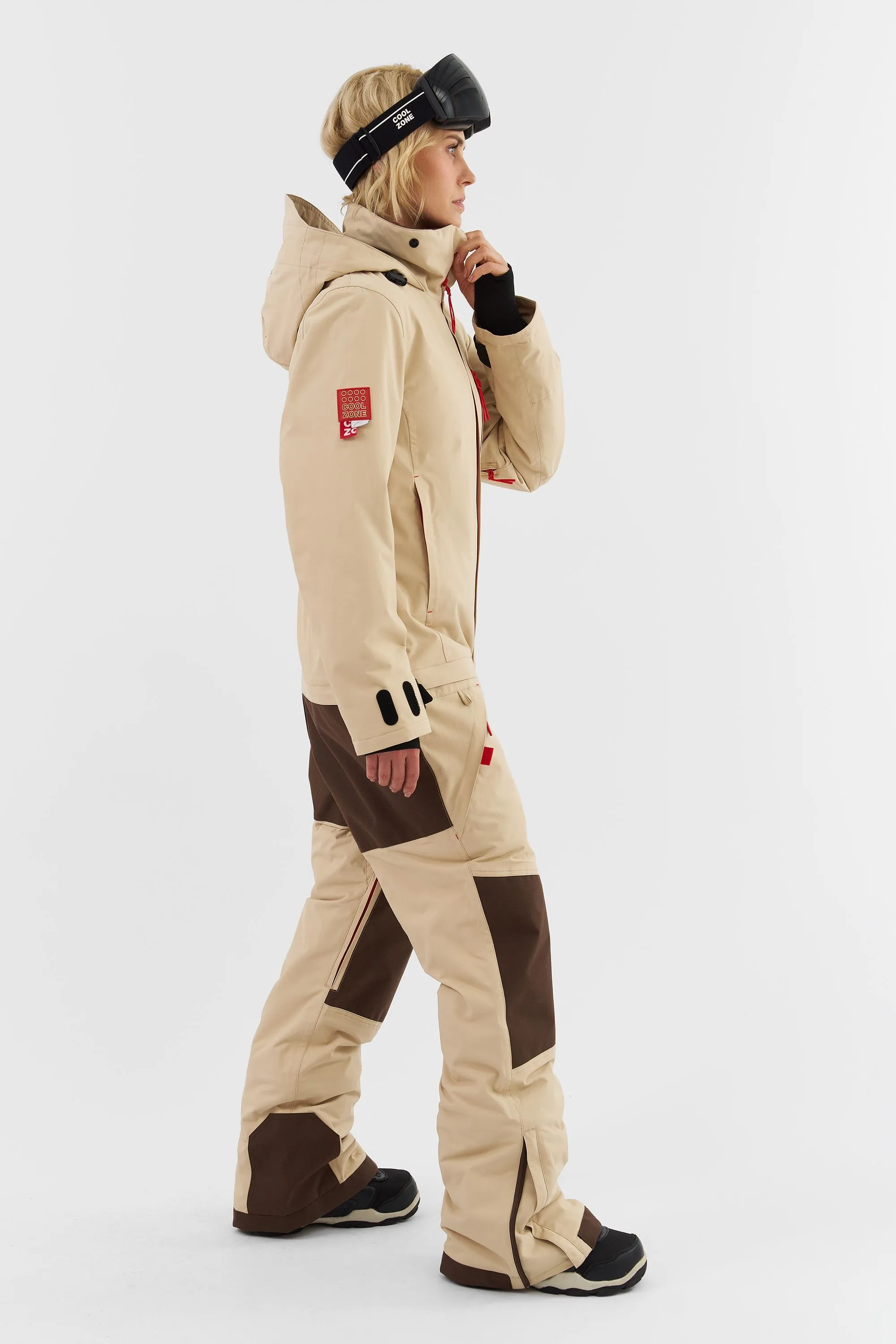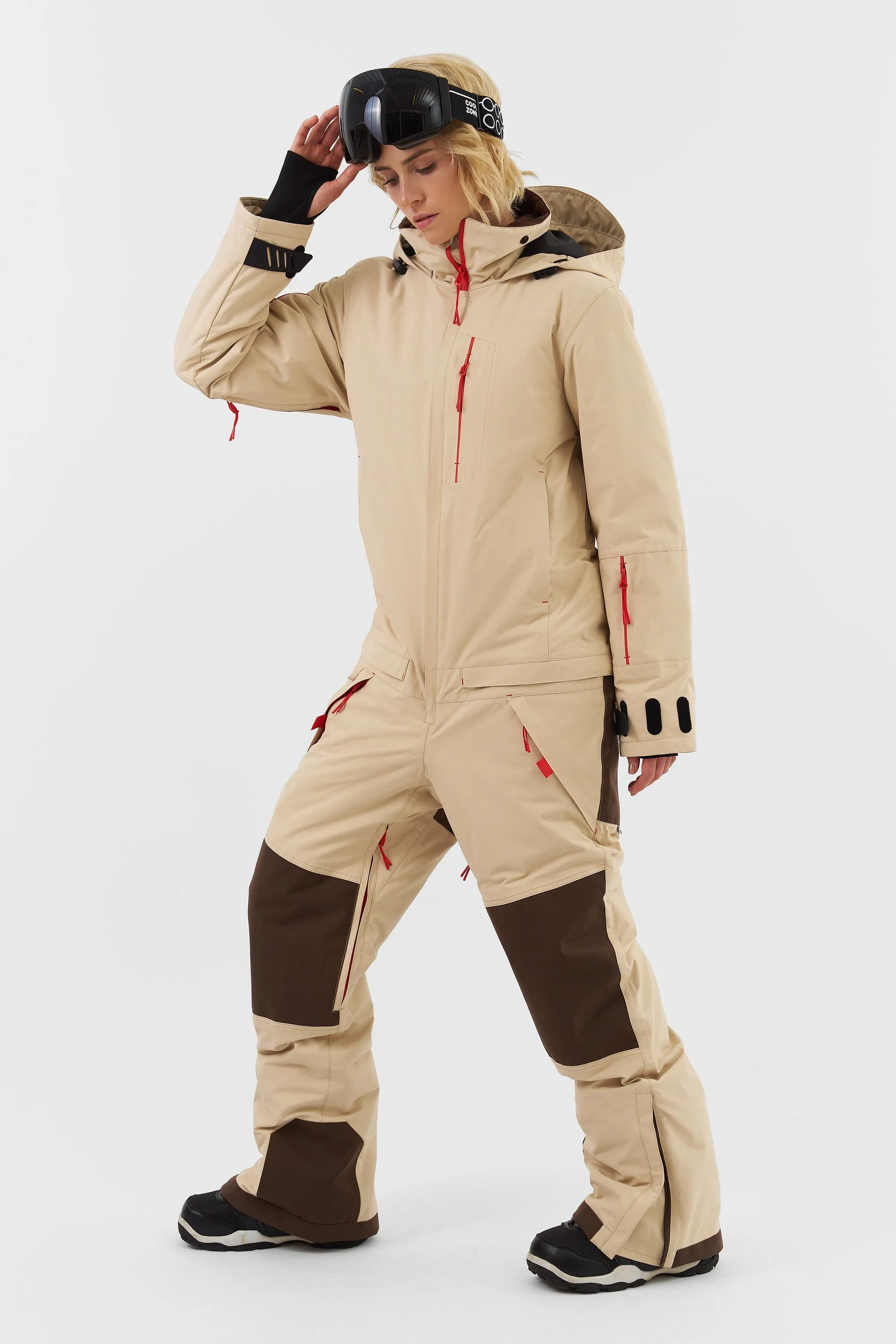 Данная модель подходит для любителей сноукайтинга. Внутренние липучки у центральной молнии позволяют прикрепить деталь для вывода крюка от трапеции, а три бегунка на центральной молнии предоставляют возможность надеть трапецию под комбинезон (данная деталь приобретается отдельно и не входит в комплектацию комбинезона). Этот функционал позволяет избегать попадания ветра и снега под комбинезон во время катания.