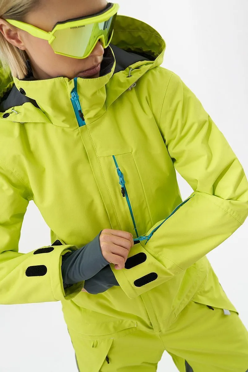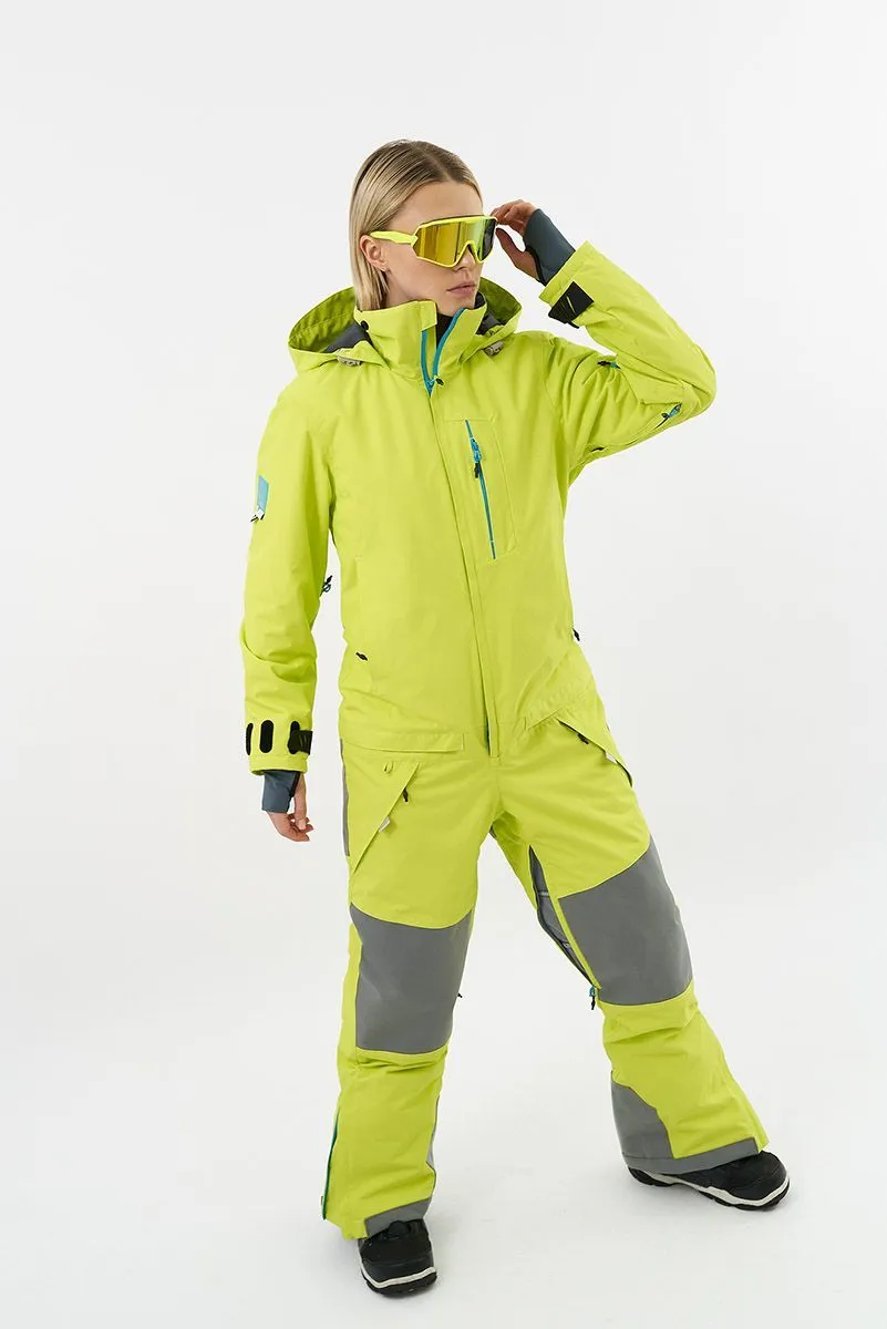 Данная модель подходит для любителей сноукайтинга. Внутренние липучки у центральной молнии позволяют прикрепить деталь для вывода крюка от трапеции, а три бегунка на центральной молнии предоставляют возможность надеть трапецию под комбинезон (данная деталь приобретается отдельно и не входит в комплектацию комбинезона). Этот функционал позволяет избегать попадания ветра и снега под комбинезон во время катания.