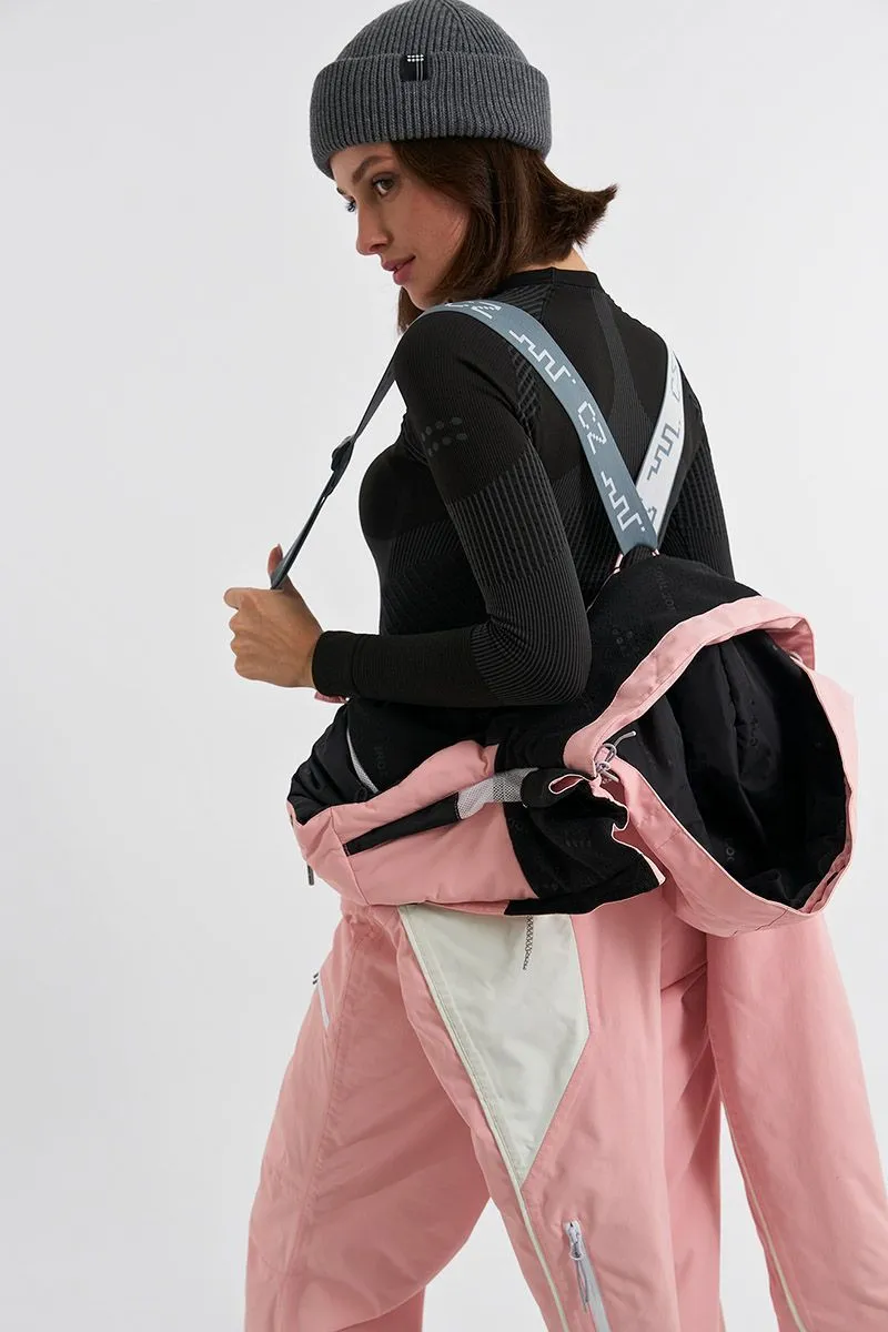 Данная модель подходит для любителей сноукайтинга. Внутренние липучки у центральной молнии позволяют прикрепить деталь для вывода крюка от трапеции, а три бегунка на центральной молнии предоставляют возможность надеть трапецию под комбинезон (данная деталь приобретается отдельно и не входит в комплектацию комбинезона). Этот функционал позволяет избегать попадания ветра и снега под комбинезон во время катания.