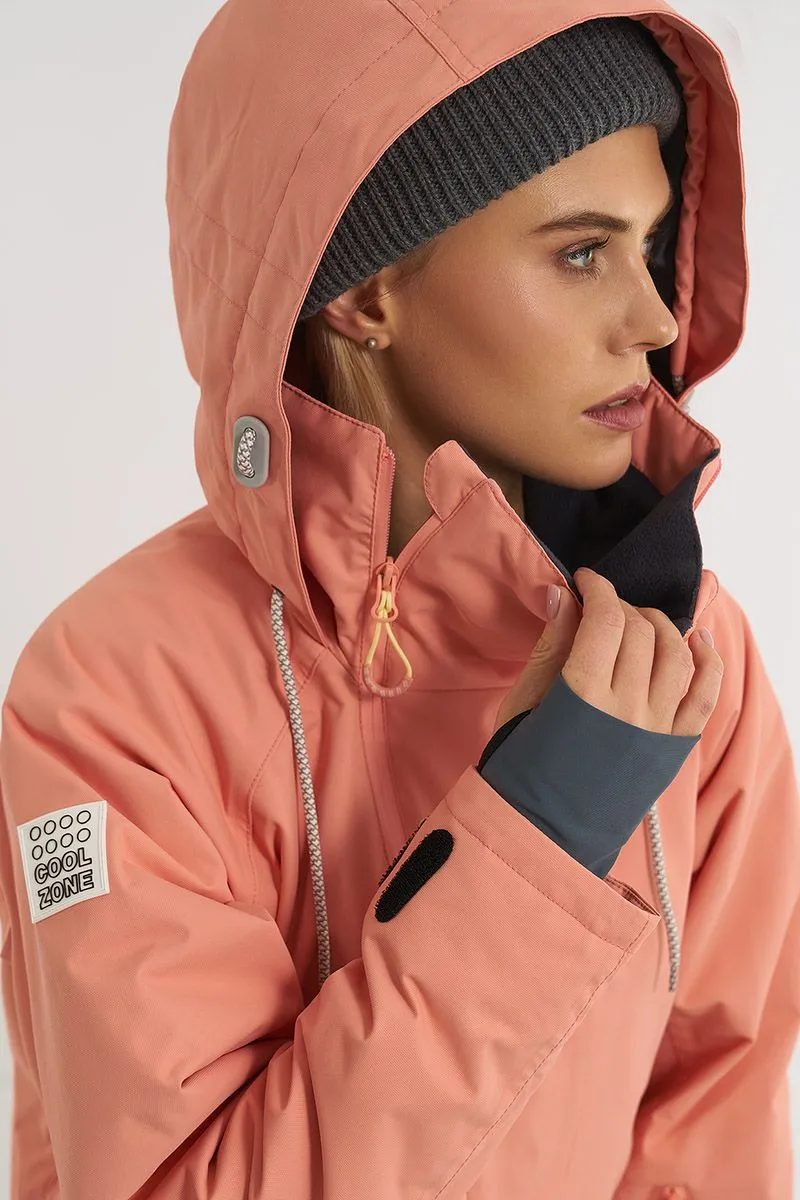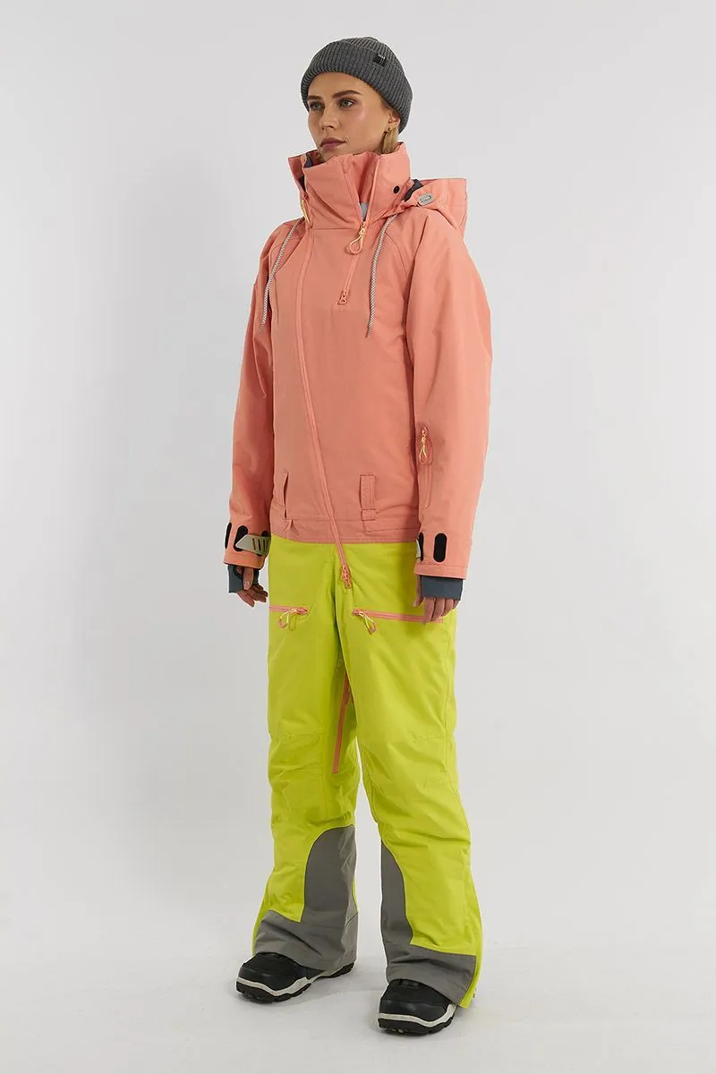 Данная модель подходит для любителей сноукайтинга. Внутренние липучки у центральной молнии позволяют прикрепить деталь для вывода крюка от трапеции, а три бегунка на центральной молнии предоставляют возможность надеть трапецию под комбинезон (данная деталь приобретается отдельно и не входит в комплектацию комбинезона). Этот функционал позволяет избегать попадания ветра и снега под комбинезон во время катания.