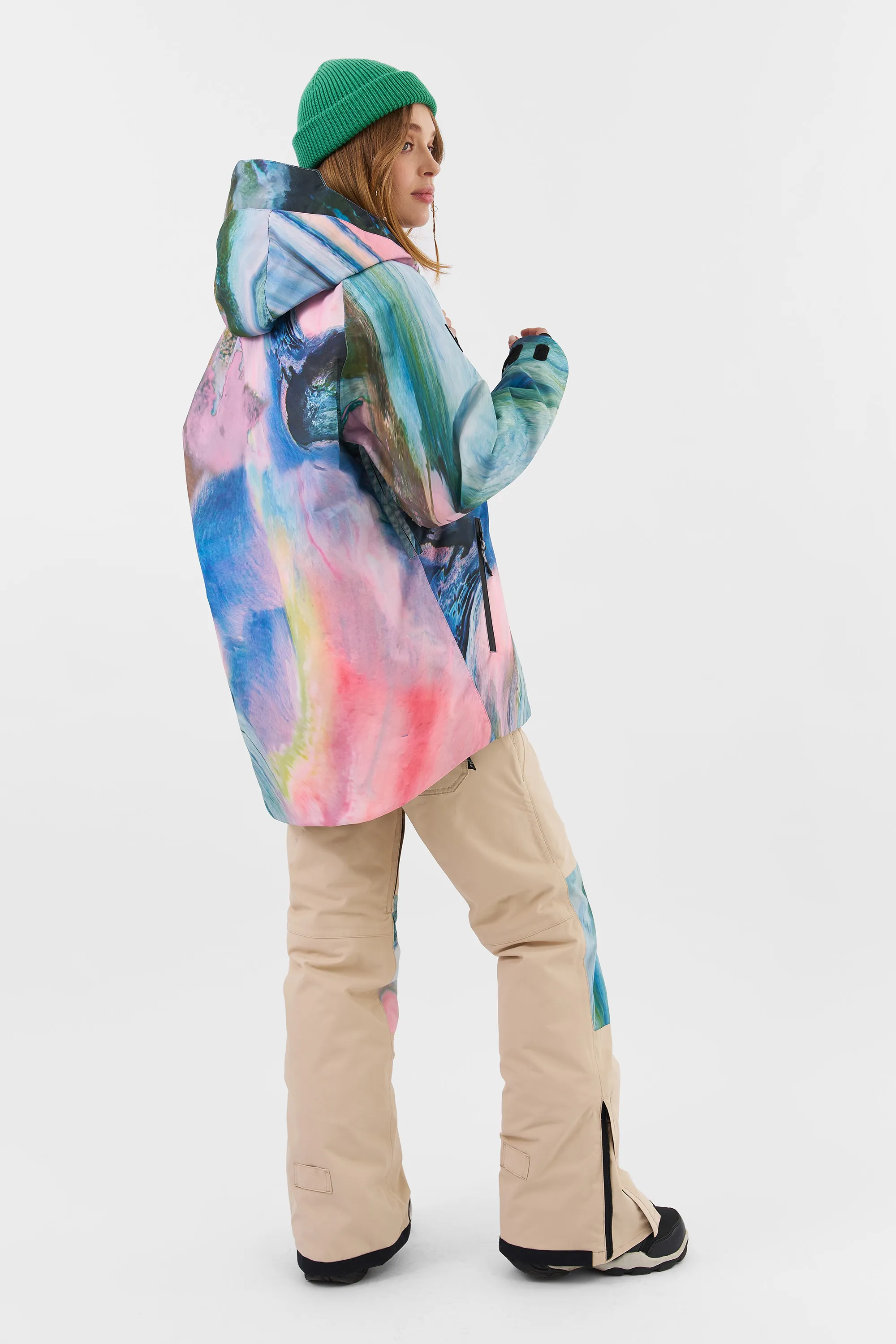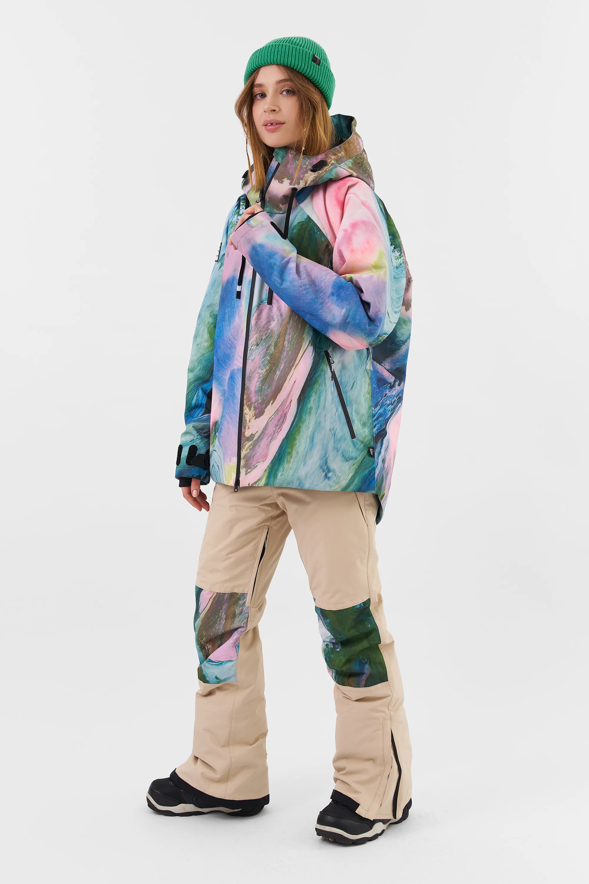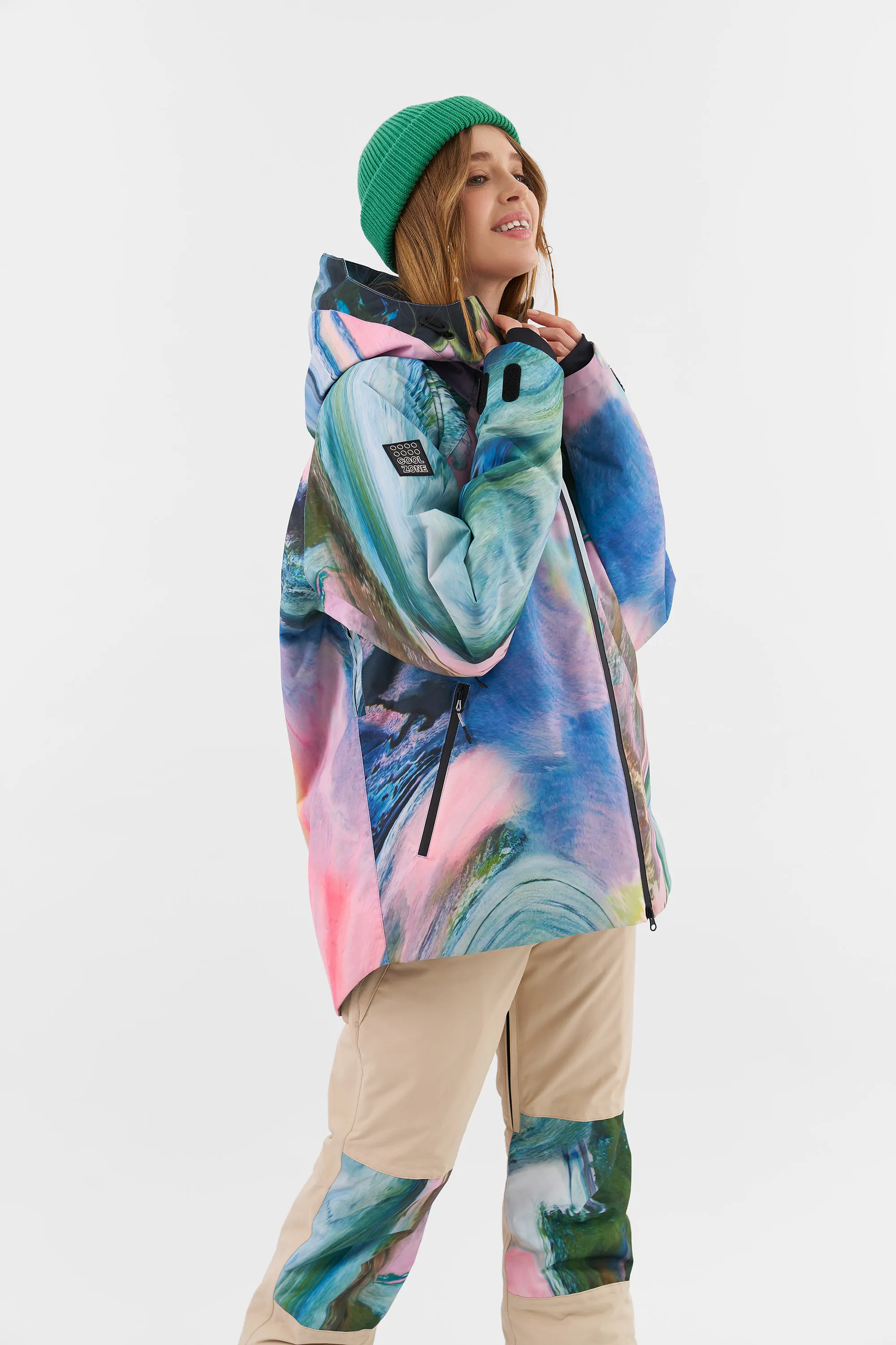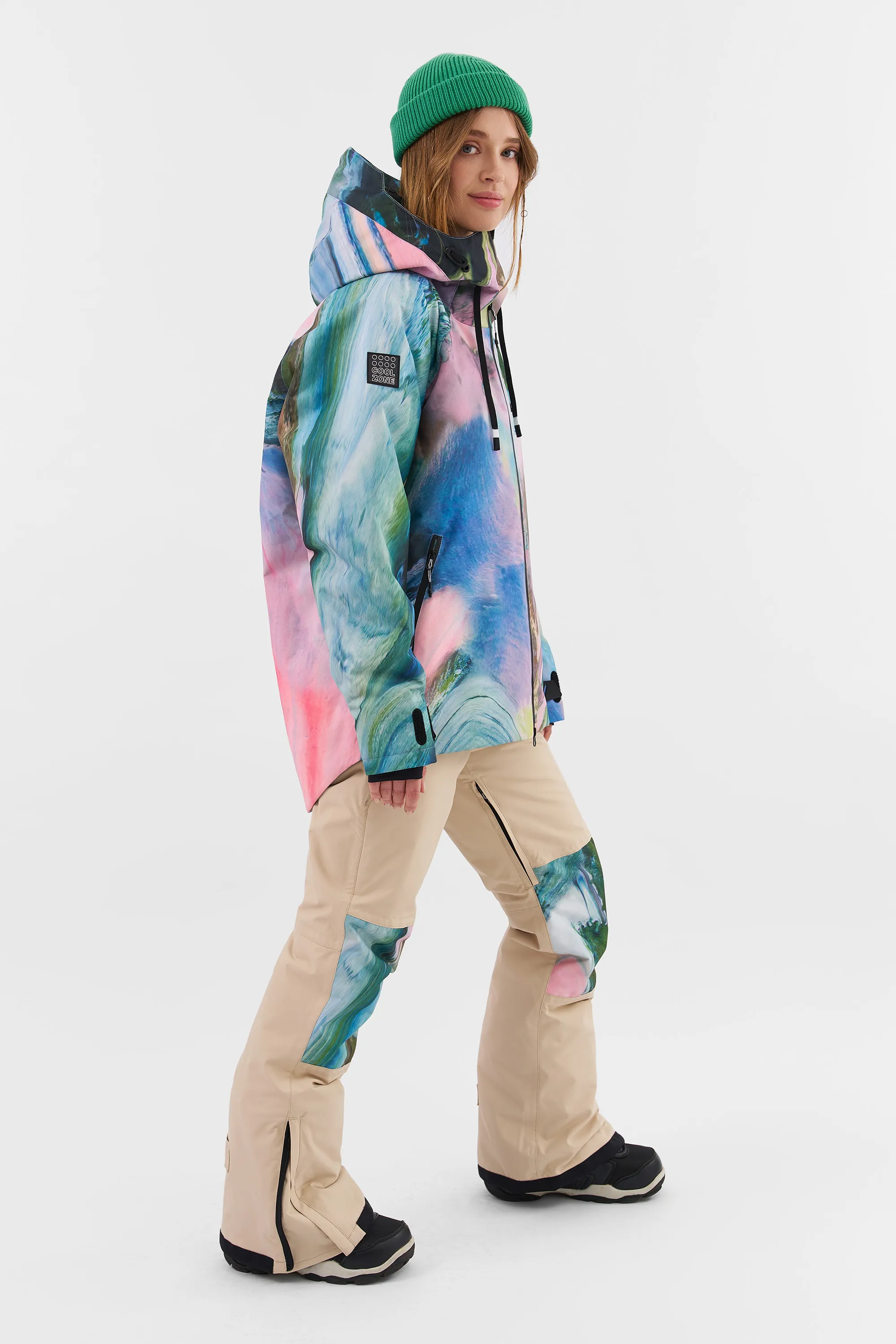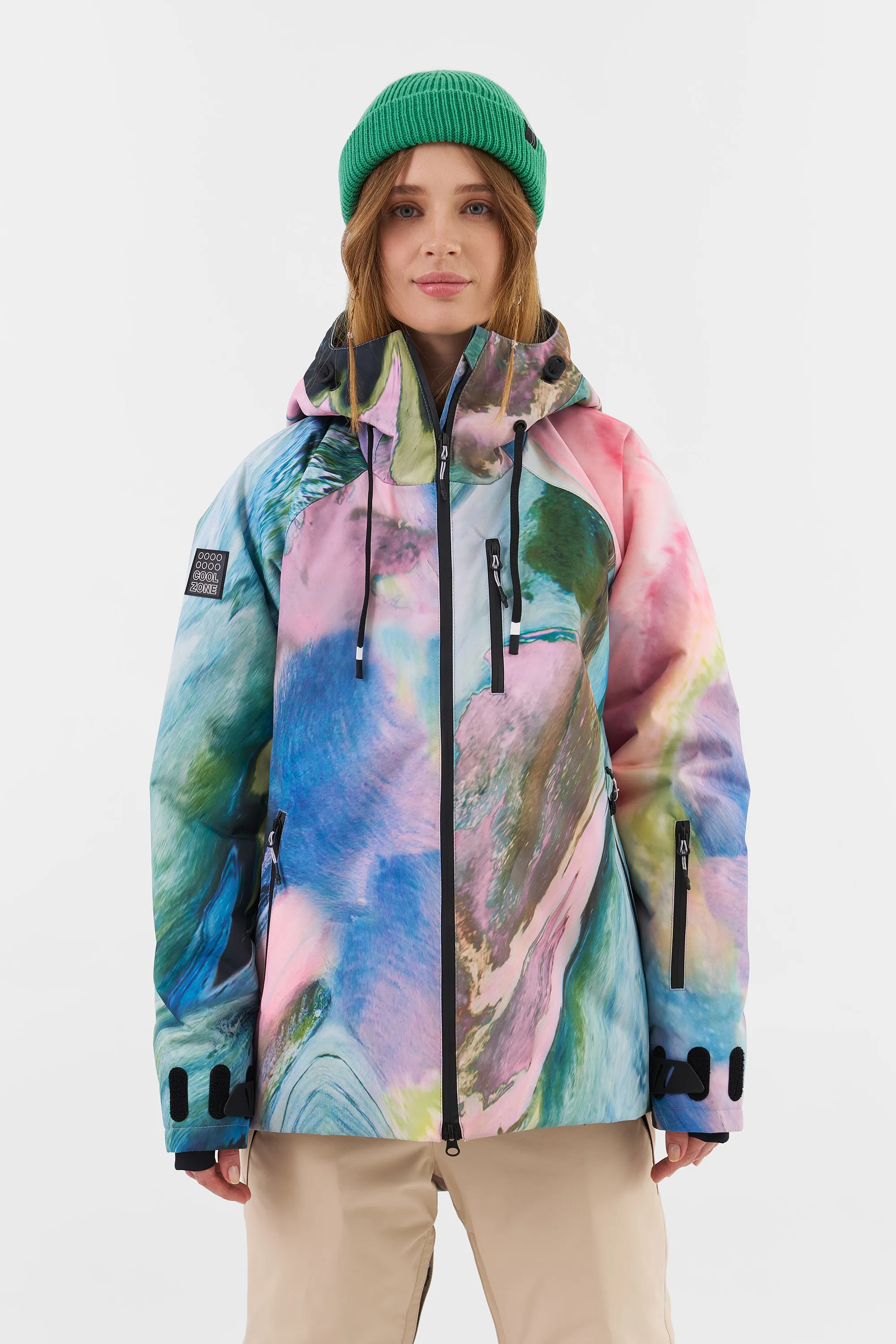 KUSAMA — женская сноубордическая куртка от Cool Zone, созданная в команде с прорайдером Надеждой Кашкевич. У данной модели современная oversize посадка с удлиненной спинкой. Прочная и износостойкая мембранная ткань увеличивает срок эксплуатации, не пропускает влагу и обладает высоким показателем паропроходимости, не создавая парникового эффекта. А высокотехнологичный утеплитель сохраняет тепло даже в суровых погодных условиях российских курортов. Влагозащитные молнии и дополнительные трикотажные манжеты исключают попадание внутрь мокрого снега.