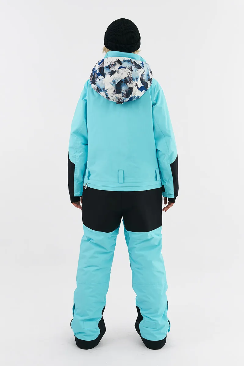 Данная модель подходит для любителей сноукайтинга. Внутренние липучки у центральной молнии позволяют прикрепить деталь для вывода крюка от трапеции, а три бегунка на центральной молнии предоставляют возможность надеть трапецию под комбинезон (данная деталь приобретается отдельно и не входит в комплектацию комбинезона). Этот функционал позволяет избегать попадания ветра и снега под комбинезон во время катания.
