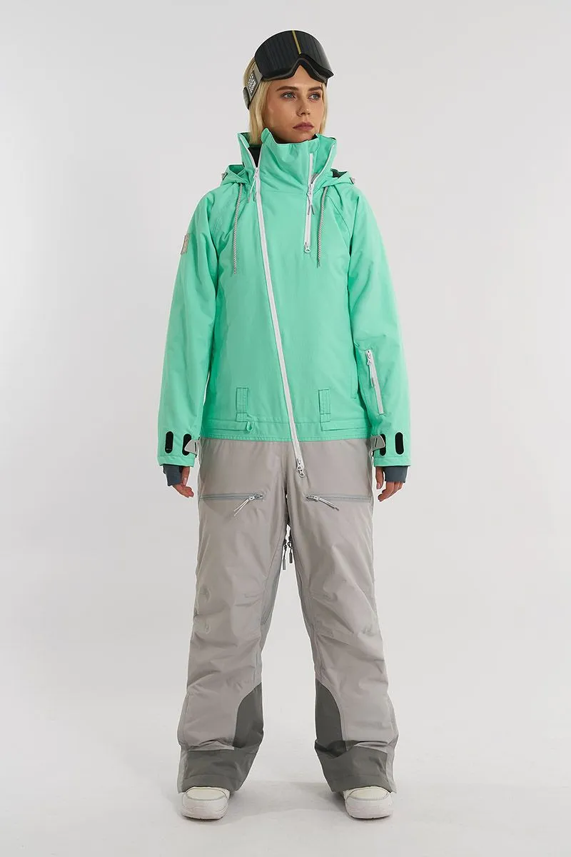 Данная модель подходит для любителей сноукайтинга. Внутренние липучки у центральной молнии позволяют прикрепить деталь для вывода крюка от трапеции, а три бегунка на центральной молнии предоставляют возможность надеть трапецию под комбинезон (данная деталь приобретается отдельно и не входит в комплектацию комбинезона). Этот функционал позволяет избегать попадания ветра и снега под комбинезон во время катания.